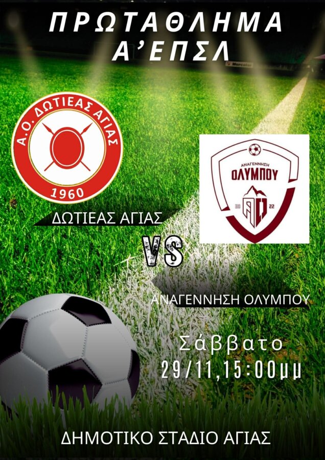 Με τα παιχνίδια της 11ης αγωνιστικής συνεχίζεται το πρωτάθλημα της Α’ ΕΠΣΛ. Ο Δωτιέας Αγιάς υποδέχεται σήμερα Σάββατο 29/11 και…