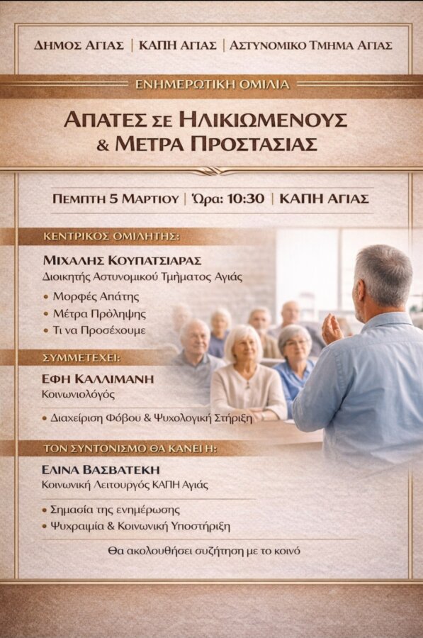 “Η δύναμη της γυναίκας σε κάθε ηλικία” / Ενημερωτική ημερίδα στην Αγιά για την εμμηνόπαυση