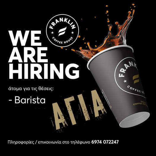 Franklin Coffee House στην Αγιά / Ζητούνται κοπέλες για τη θέση barista