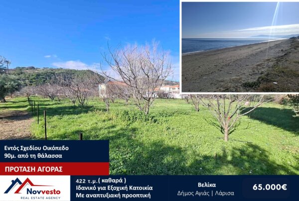 Βελίκα / Πωλείται οικόπεδο 90 μέτρα από την παραλία
