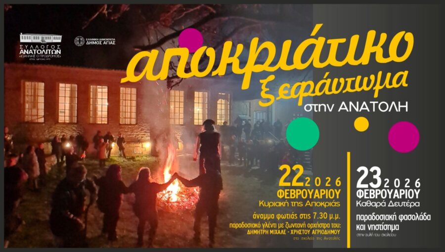 Ο Σύλλογος Ανατολιτών «Ιωάννης ο Πρόδρομος» διοργανώνει στην Ανατολή Αγιάς ένα αποκριάτικο διήμερο, γεμάτο κέφι, μουσική…