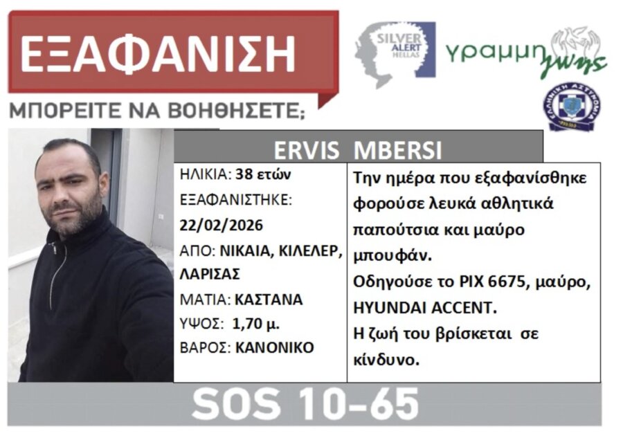 Εξαφανίστηκε 38χρονος από το σπίτι του στη Νίκαια / Το αυτοκίνητό του και το μπουφάν του εντοπίστηκαν στον Αγιόκαμπο