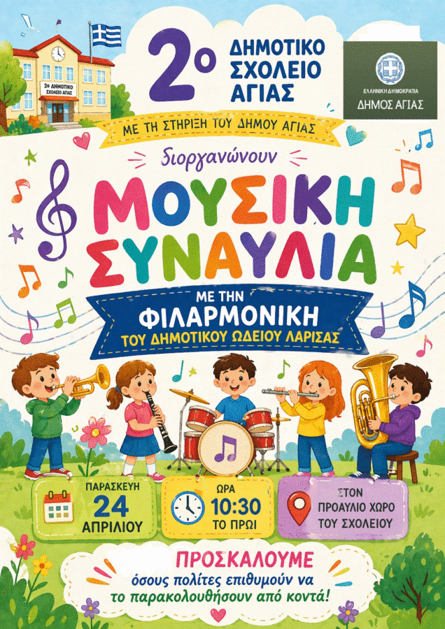 O Πολιτιστικός Εξωραϊστικός Μορφωτικός Σύλλογος Μεγαλοβρύσου Αγιάς, διατηρώντας την παράδοση, διοργανώνει την εκδήλωση «Πασχαλιόγιορτα 2026», την…