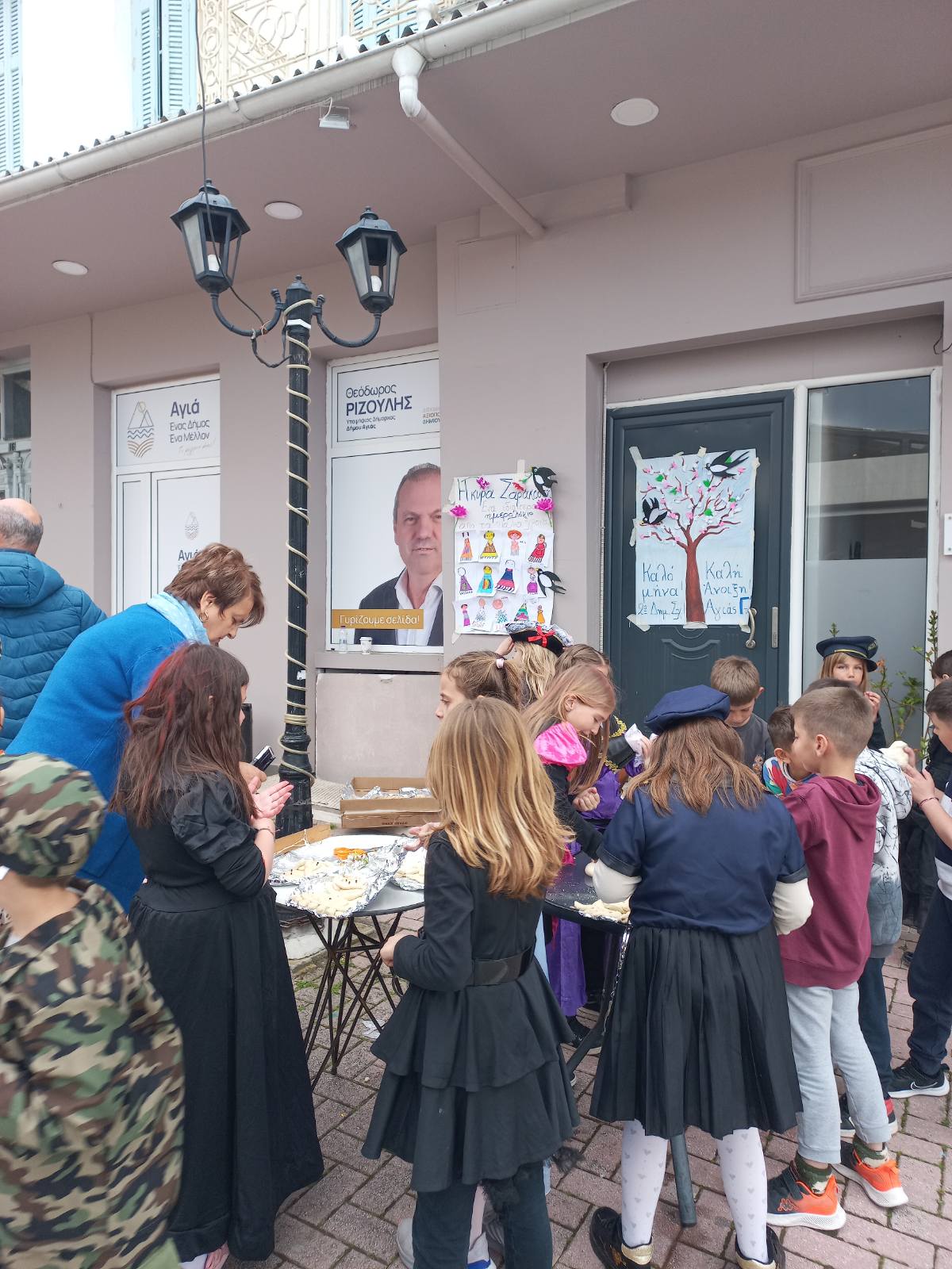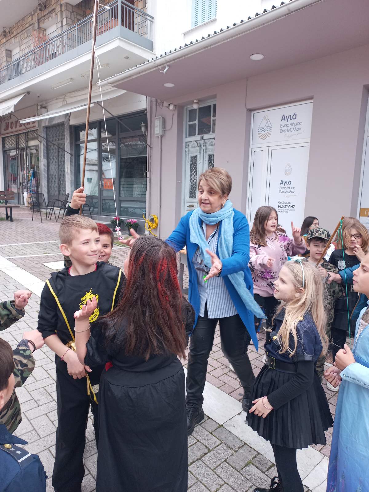 Αυτά τα δύο πολύ όμορφα έθιμα ζωντάνεψαν οι μαθητές της Γ’ τάξης του 2ου Δημοτικού Σχολείου Αγιάς στον κεντρικό πεζόδρομο της κωμόπολης προσεγγίζοντας με βιωματικό τρόπο την έννοια της παράδοσης και της λαογραφίας την Αποκριά και τη Σαρακοστή.