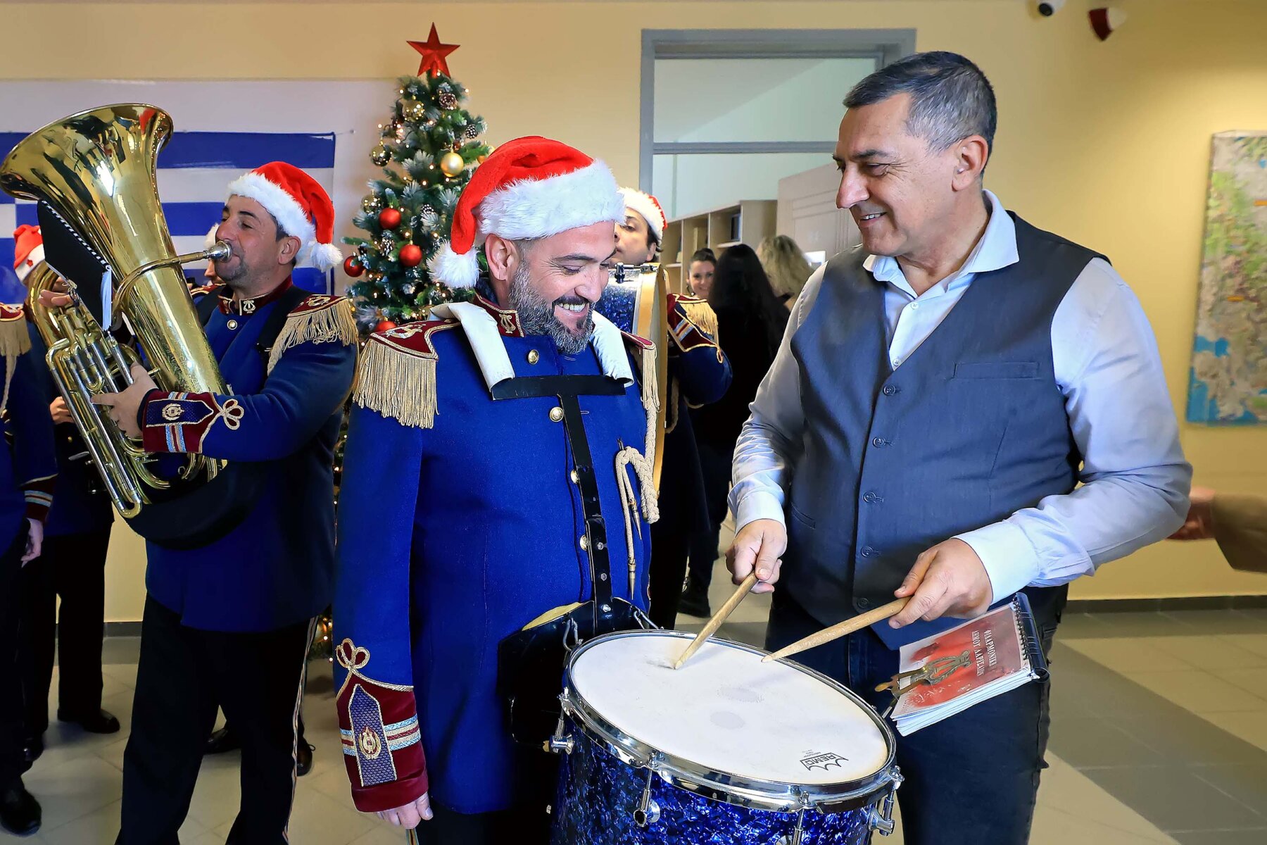 Παραμονή πρωτοχρονιάς και τα κάλαντα στον Περιφερειάρχη Θεσσαλίας Δημήτρη Κουρέτα έψαλλαν η Φιλαρμονική του Δημοτικού Ωδείου Λάρισας (ΔΩΛ), η μπάντα της 1ης Στρατιάς, το Αρχηγείο Τακτικής Αεροπορίας (ΑΤΑ) και η 110 Πτέρυγας Μάχης. Επίσης, οι αθλητικοί σύλλογοι Λάρισας Απόλλων, Προμηθέας, Ποδηλατικός Σύλλογος Λάρισας Πηνειός, Ολυμπιάδα ΑΜΕΑ, Φιλαθλητικός Σύλλογος Βόλεϊ και τα τμήματα υποδομών του Ναυτικού Ομίλου Λάρισας.