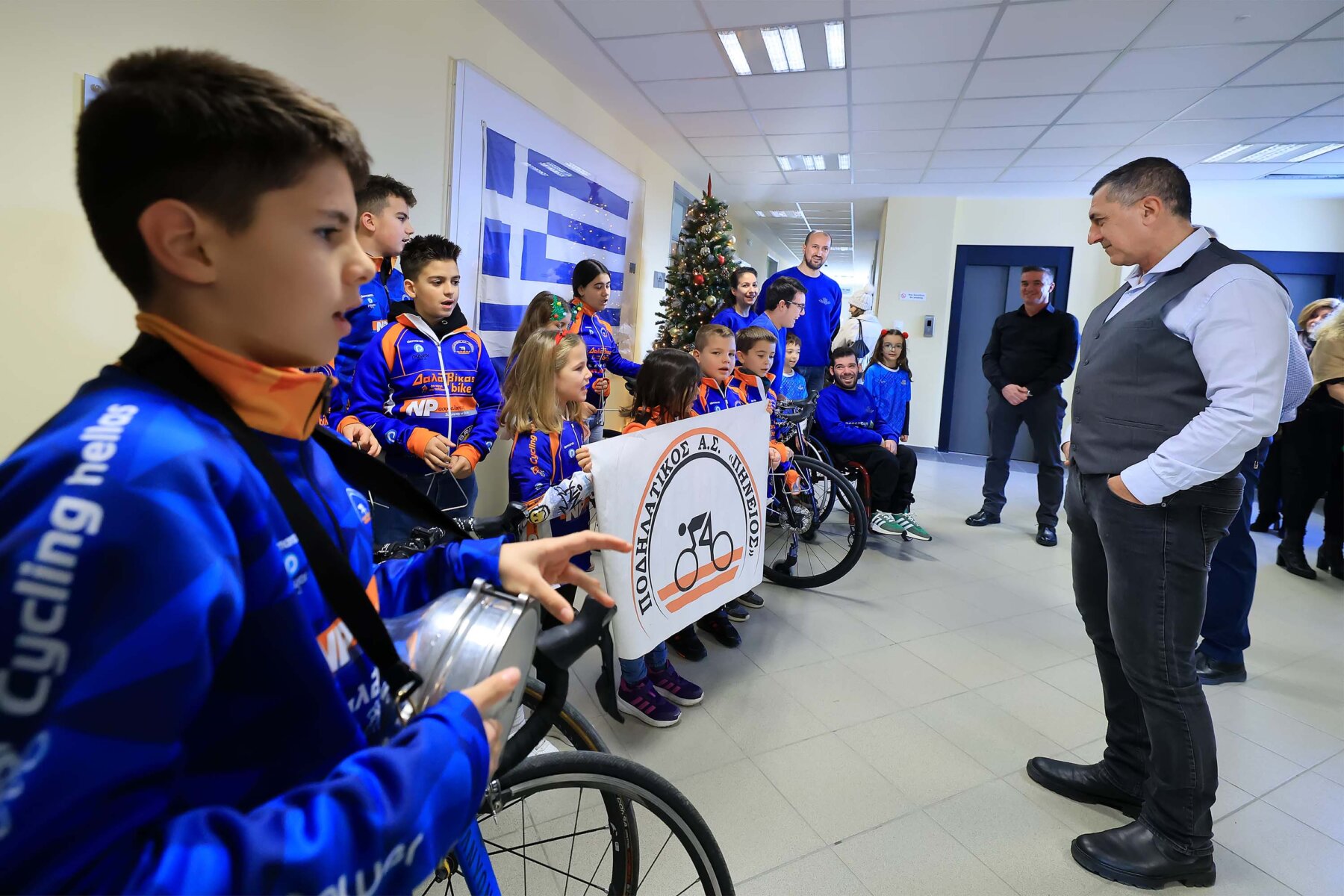 Ο Περιφερειάρχης, συγκινημένος, συνομίλησε με όλους τους συμμετέχοντες, μοιράζοντας ευχές και δώρα για τη νέα χρονιά. Με ιδιαίτερη θέρμη απευθύνθηκε στα παιδιά, τονίζοντας την αξία του αθλητισμού ως τρόπου ζωής και διαπαιδαγώγησης. Ξεχώρισε η επαφή του με τους μικρούς ποδηλάτες, στους οποίους έδειξε μεγάλο ενδιαφέρον, μοιραζόμενος τη δική του αγάπη για το ποδήλατα.