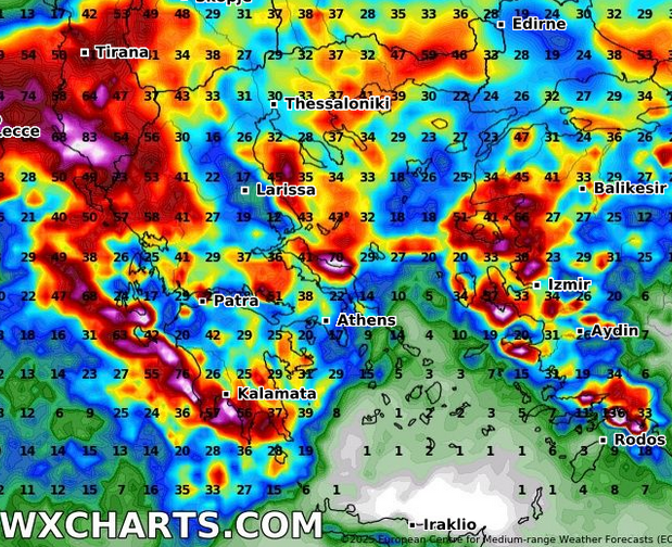 ΑΝΕΜΟΙ: Στα πεδινά βορειοανατολικοί 2-3 μποφόρ και στα θαλάσσια βόρειοι βορειοανατολικοί 5-6 μποφόρ.