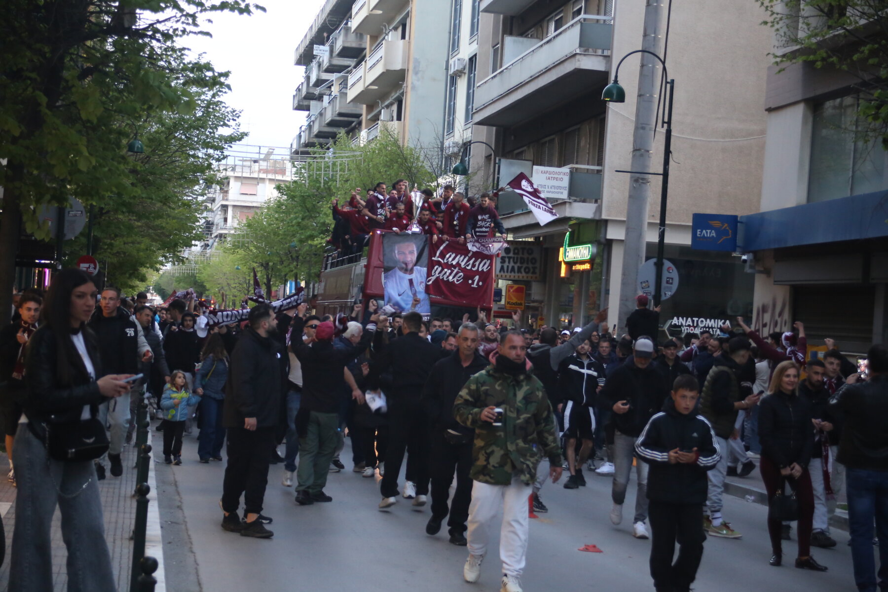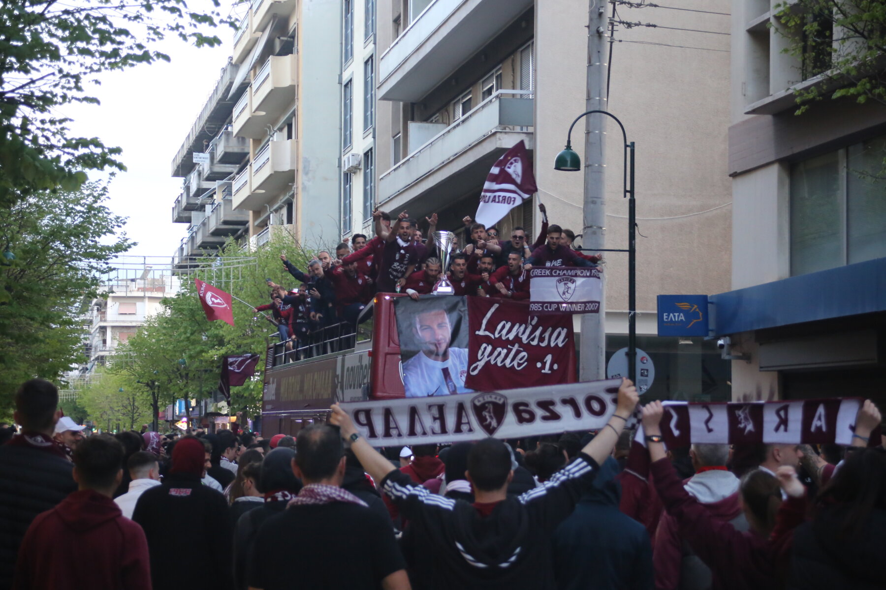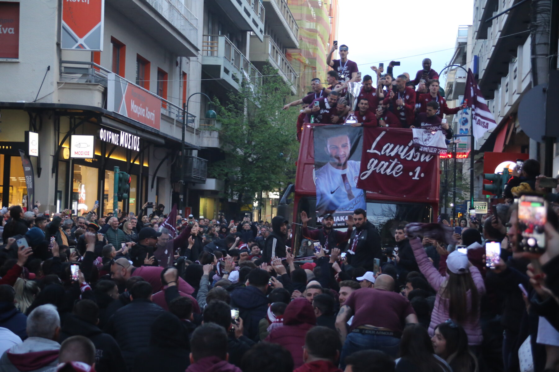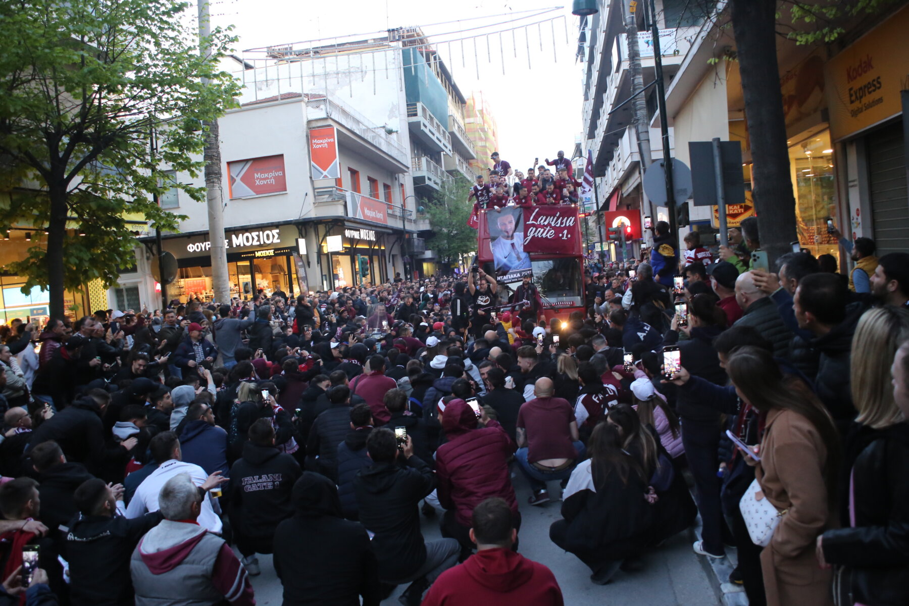 Το ξέφρενο πανηγύρι της ανόδου συνεχίστηκε, μετά το AEL FC Arena, στο κέντρο της Λάρισας.