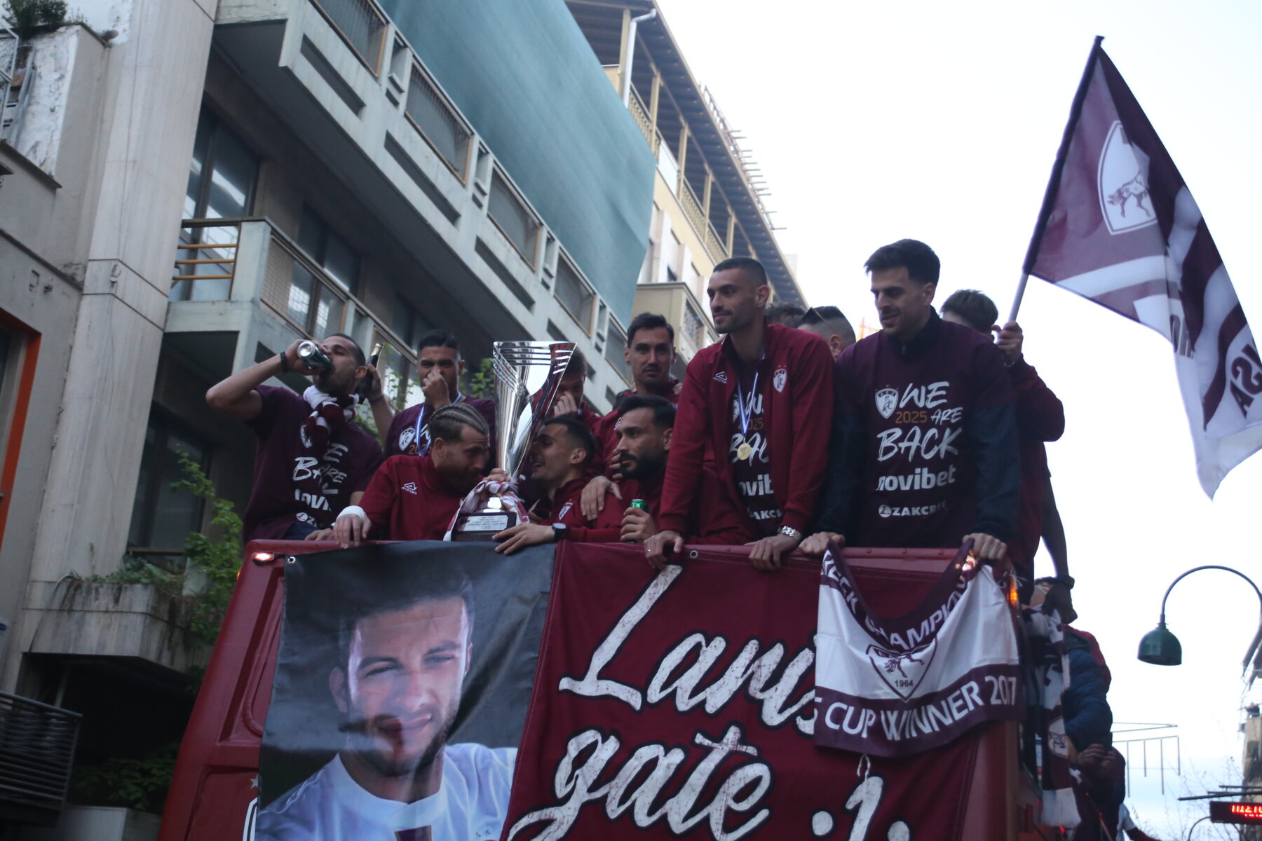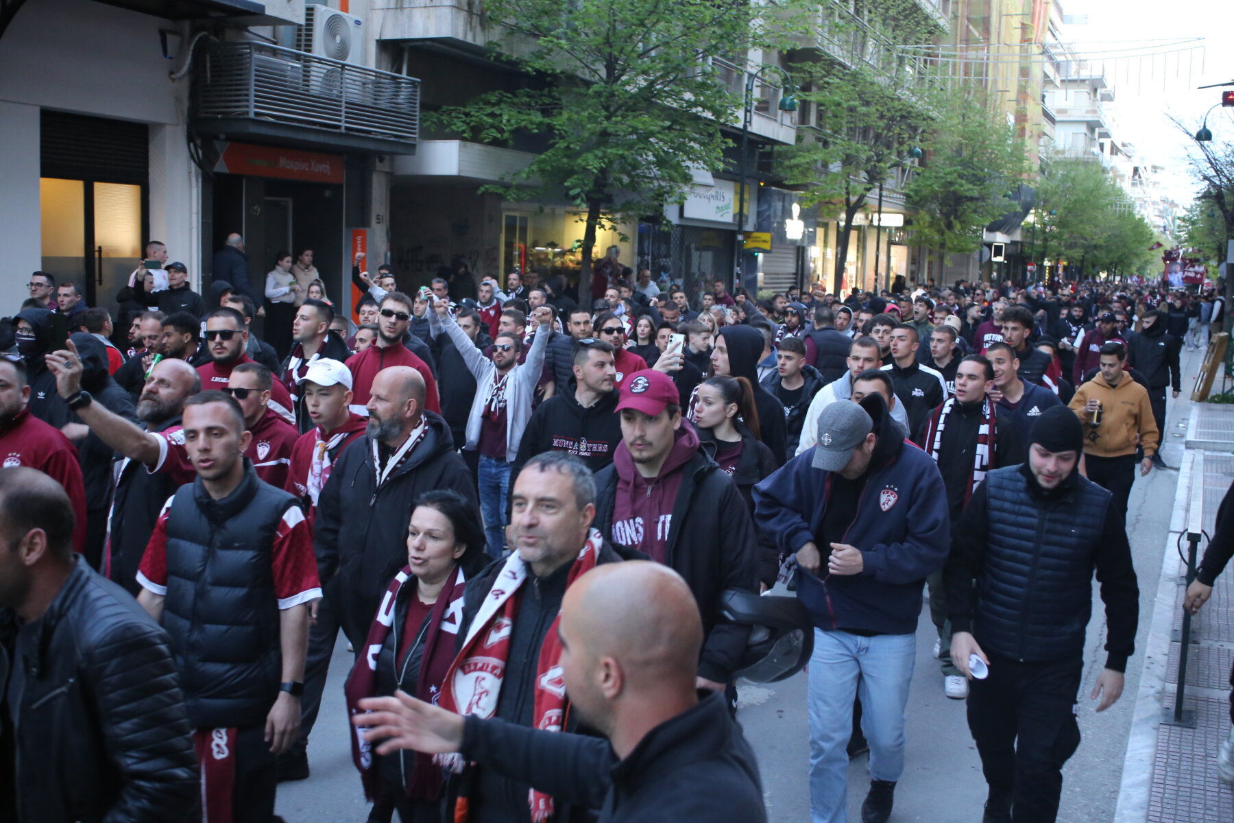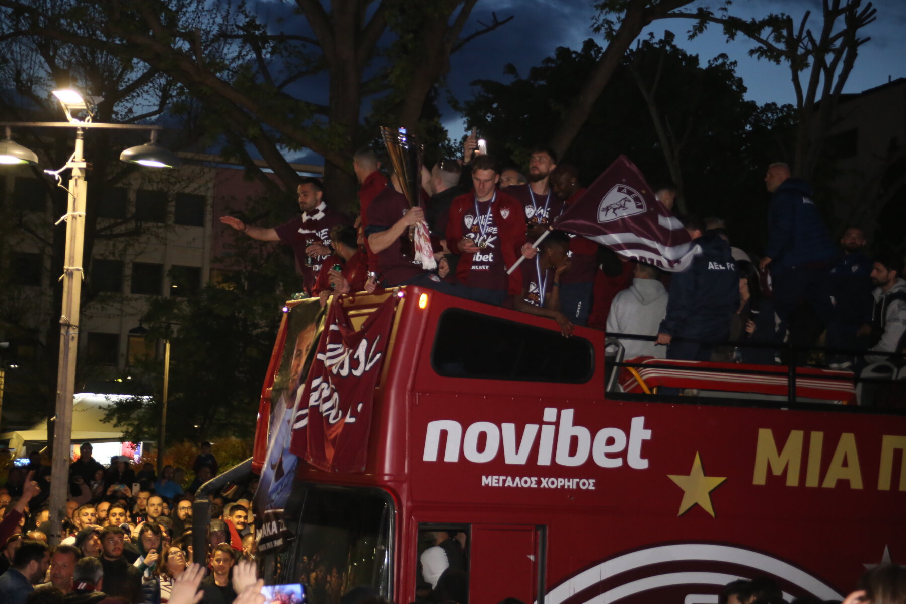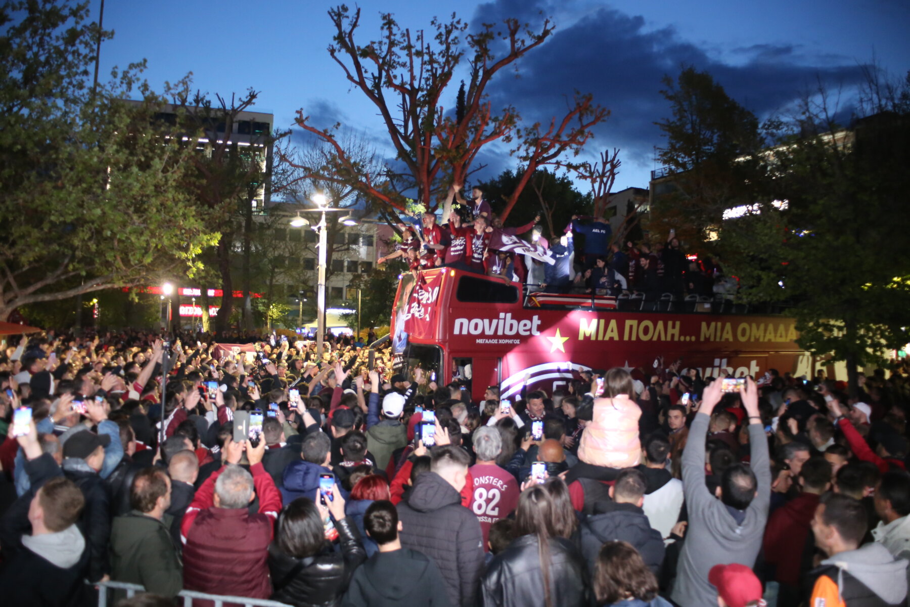 Το ξέφρενο πανηγύρι της ανόδου συνεχίστηκε, μετά το AEL FC Arena, στο κέντρο της Λάρισας.