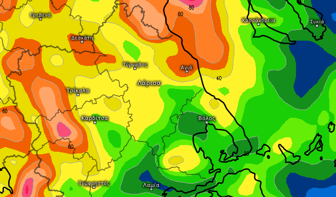 ΘΕΡΜΟΚΡΑΣΙΑ: Στα πεδινά των νομών Λάρισας, Τρικάλων και Καρδίτσας από 10 έως 16/18 βαθμούς κελσίου, στην Μαγνησία, τα παράλια και τις Σποράδες από 13 έως 18/19 βαθμούς κελσίου.