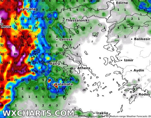 ΑΝΕΜΟΙ: Στα πεδινά βορειοανατολικοί 2 μποφόρ και στα θαλάσσια ανατολικοί βορειοανατολικοί 3-4 μποφόρ.