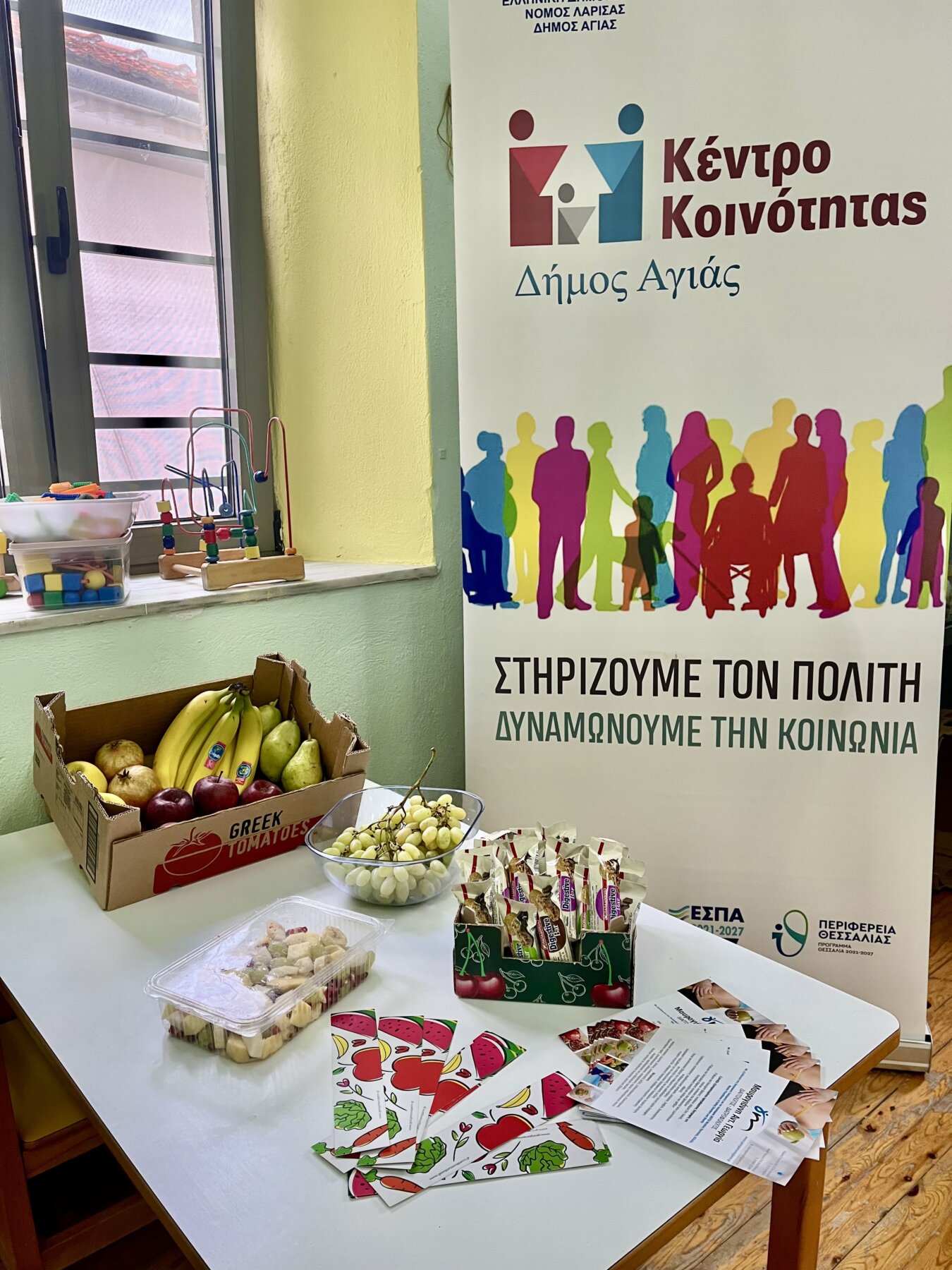 Με αφορμή την Παγκόσμια Ημέρα Διατροφής που γιορτάζεται κάθε χρόνο στις 16 Οκτωβρίου, στο πλαίσιο των κοινωνικών δράσεων του Δήμου Αγιάς, η Διεύθυνση Κοινωνικής Πρόνοιας, Παιδείας, Αθλητισμού, Πολιτισμού κι Εξυπηρέτησης του Πολίτη, με την κ. Ντελή Γεωργία, ειδική παιδαγωγό του Κέντρου Κοινότητας, σε συνεργασία με τη διατροφολόγο κ. Μαυρογιάννη Γεωργία, διοργάνωσαν μια υπέροχη εκπαιδευτική και βιωματική δράση με θέμα “Τρώω υγιεινά – μεγαλώνω δυνατά”, την Πέμπτη 16 Οκτωβρίου στον χώρο της σχολικής μονάδας του 1ου Νηπιαγωγείου Αγιάς το οποίο γέμισε με χρώματα, γεύσεις και…φρούτα!