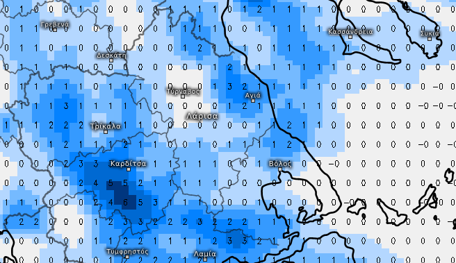 ΘΕΡΜΟΚΡΑΣΙΑ: Στα πεδινά των νομών Λάρισας, Τρικάλων και Καρδίτσας από 11 έως 18/19 βαθμούς κελσίου, στην Μαγνησία, τα παράλια και τις Σποράδες από 13 έως 19/20 βαθμούς κελσίου.