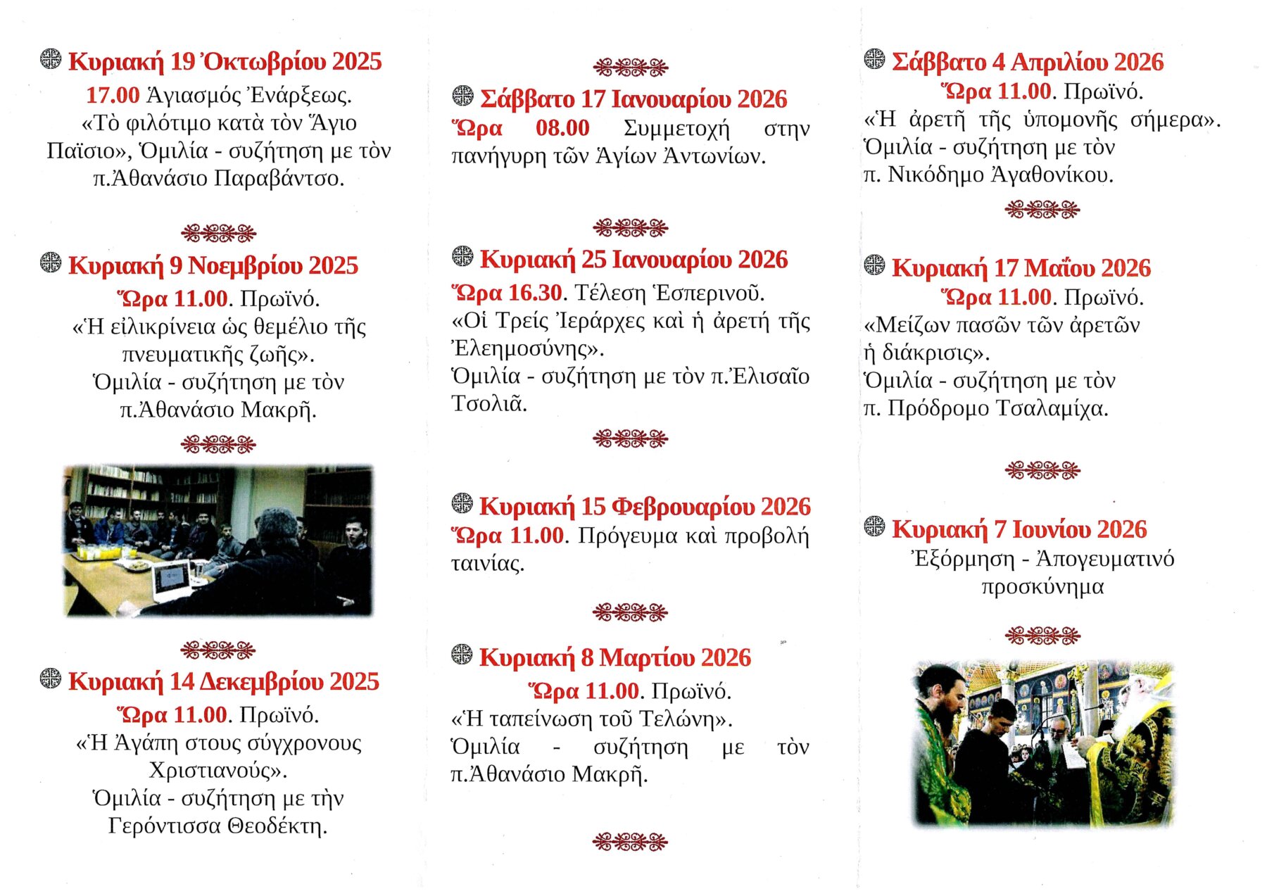 Ο Αρχιδιάκονος Ιάκωβος, υπεύθυνος του τομέα αναγνωστών, αναφέρθηκε στη σημασία του θεσμού των συναντήσεων, καθώς και στην πρωτοβουλία του Σεβασμιωτάτου να πραγματοποιηθούν για πρώτη φορά ανάλογες συνάξεις στην περιοχή της Αγιάς. Παρουσίασε επίσης το φετινό πρόγραμμα των συναντήσεων, το οποίο έχει ως γενικό θέμα τις Αρετές. Την ευθύνη των συναντήσεων έχουν ο Αρχιδιάκονος Ιάκωβος και ο Διάκονος Πρόδρομος, αδελφός της Ιεράς Μονής Αγίου Παντελεήμονος Αγιάς.