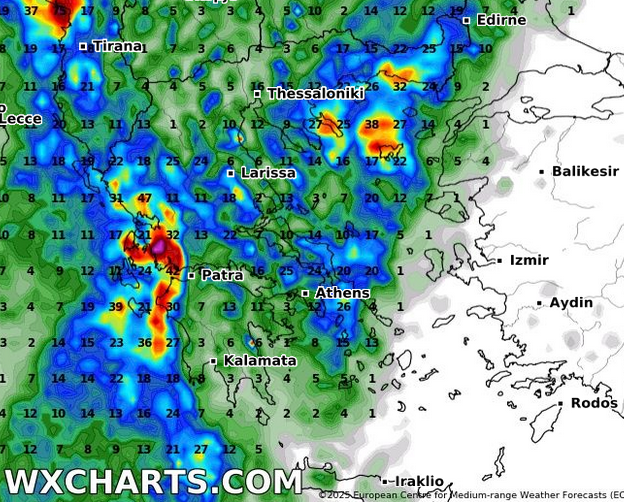 ΕΝΔΕΙΚΤΙΚΟΙ ΧΑΡΤΕΣ ΕΚΤΙΜΗΣΗΣ ΣΥΝΟΛΙΚΟΥ ΥΕΤΟΥ ΘΕΣΣΑΛΙΑΣ & ΕΛΛΑΔΑΣ 3-4/11: