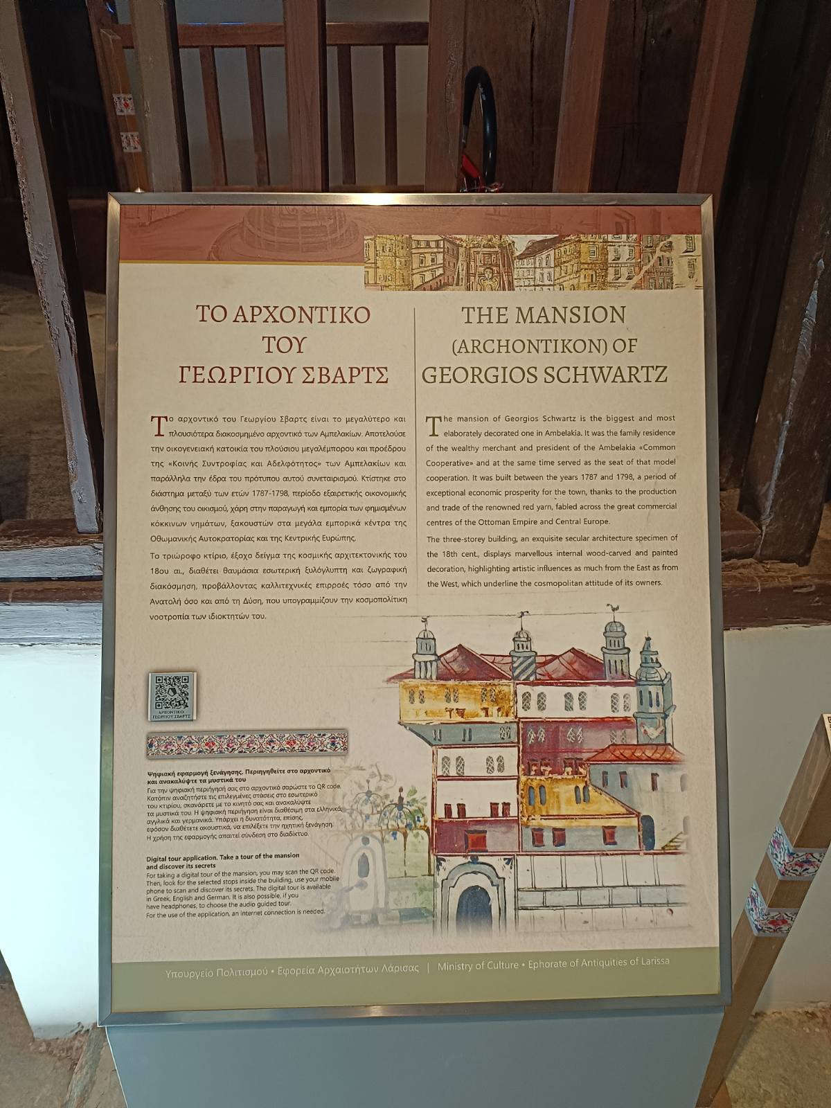 Κατά τη διάρκεια της εκδρομής ξεναγήθηκαν στο επιβλητικό Αρχοντικό Σβαρτς, ένα μνημείο που αναδεικνύει την αρχιτεκτονική και την ιστορία του τόπου, γνώρισαν την πλούσια παράδοση των Αμπελακίων και ενημερώθηκαν για την πρωτοποριακή συνεταιριστική οργάνωση των κατοίκων τον 18ο αιώνα, που αποτέλεσε μοναδικό παράδειγμα συνεργασίας και προόδου, περιηγήθηκαν στον γραφικό οικισμό, απολαμβάνοντας την επαφή με τη φύση και το αυθεντικό τοπίο που συνδυάζει ιστορία και ομορφιά.