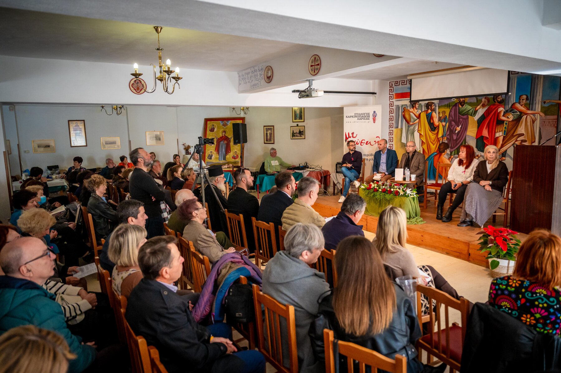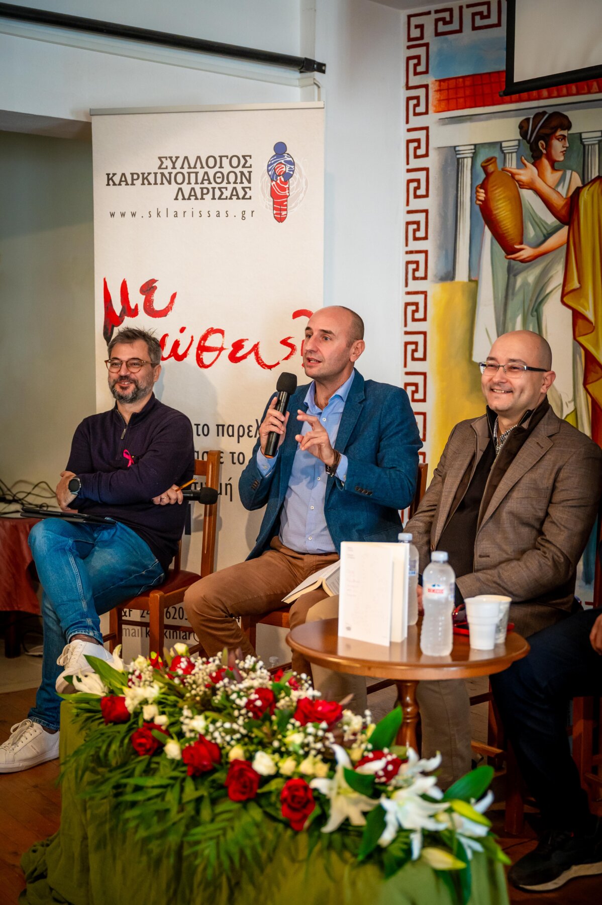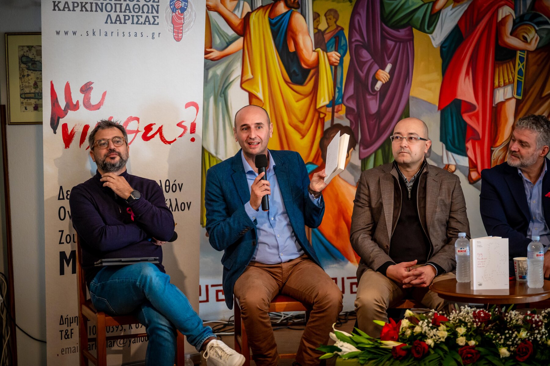 Στον φιλόξενο χώρο του Πνευματικού Κέντρου του Μητροπολιτικού Ναού των Αγίων Αντωνίων και με συντονιστή της παρουσίασης τον δημοσιογράφο Θανάση Αραμπατζή, η εκδήλωση άνοιξε με χαιρετισμό του Αρχιερατικού Επιτρόπου, πρωτοπρεσβύτερου π. Αθανάσιου Μακρή, ο οποίος, μεταφέροντας και τις θερμές ευχές του Σεβασμιοτάτου Μητροπολίτη Δημητριάδος και Αγιάς κ. Ιγνατίου, τόνισε χαρακτηριστικά «Ο συγγραφέας Κώστας Γκιάστας δεν περιορίζεται μόνο στο να μας ταξιδεύει στις ιστορίες της Λάρισας, αλλά δίνει ένα ισχυρό μήνυμα ανθρωπιάς προσφέροντας όλα τα έσοδα του βιβλίου στο Σύλλογο Καρκινοπαθών μετατρέποντας με αυτόν τον τρόπο αυτές τις ιστορίες σε ιστορίες ελπίδας».