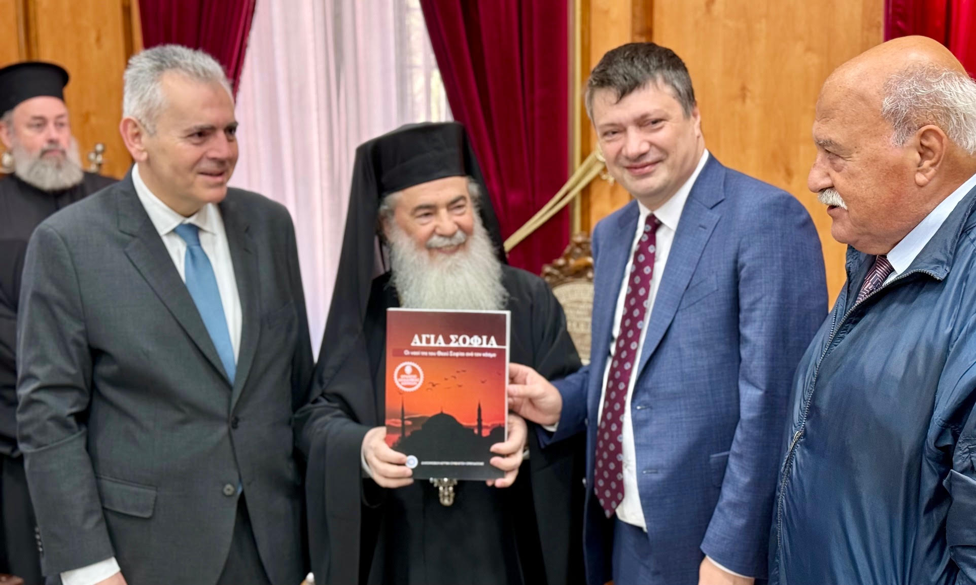 Τα παραπάνω τόνισε ο Γενικός Γραμματέας της Διακοινοβουλευτικής Συνέλευσης Ορθοδοξίας (ΔΣΟ), Μέλος της Βουλής των Ελλήνων, δρ Μάξιμος Χαρακόπουλος, κατά την προσφώνησή του προς τον Πατριάρχη Ιεροσολύμων κ.κ. Θεόφιλο Γ΄, που έλαβε χώρα κατά την επίσκεψη των μελών της Διεθνούς Γραμματείας της ΔΣΟ στο Πατριαρχείο Ιεροσολύμων.