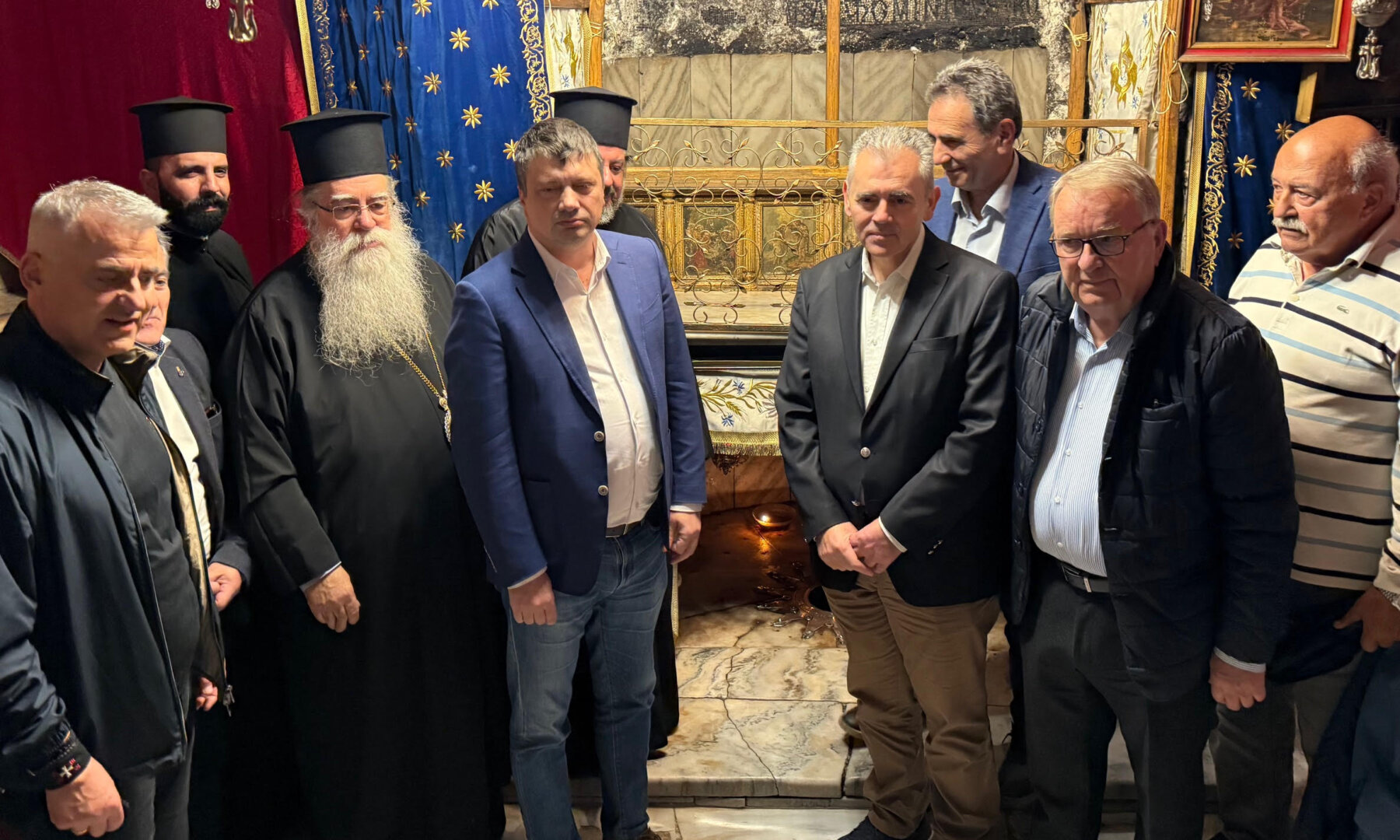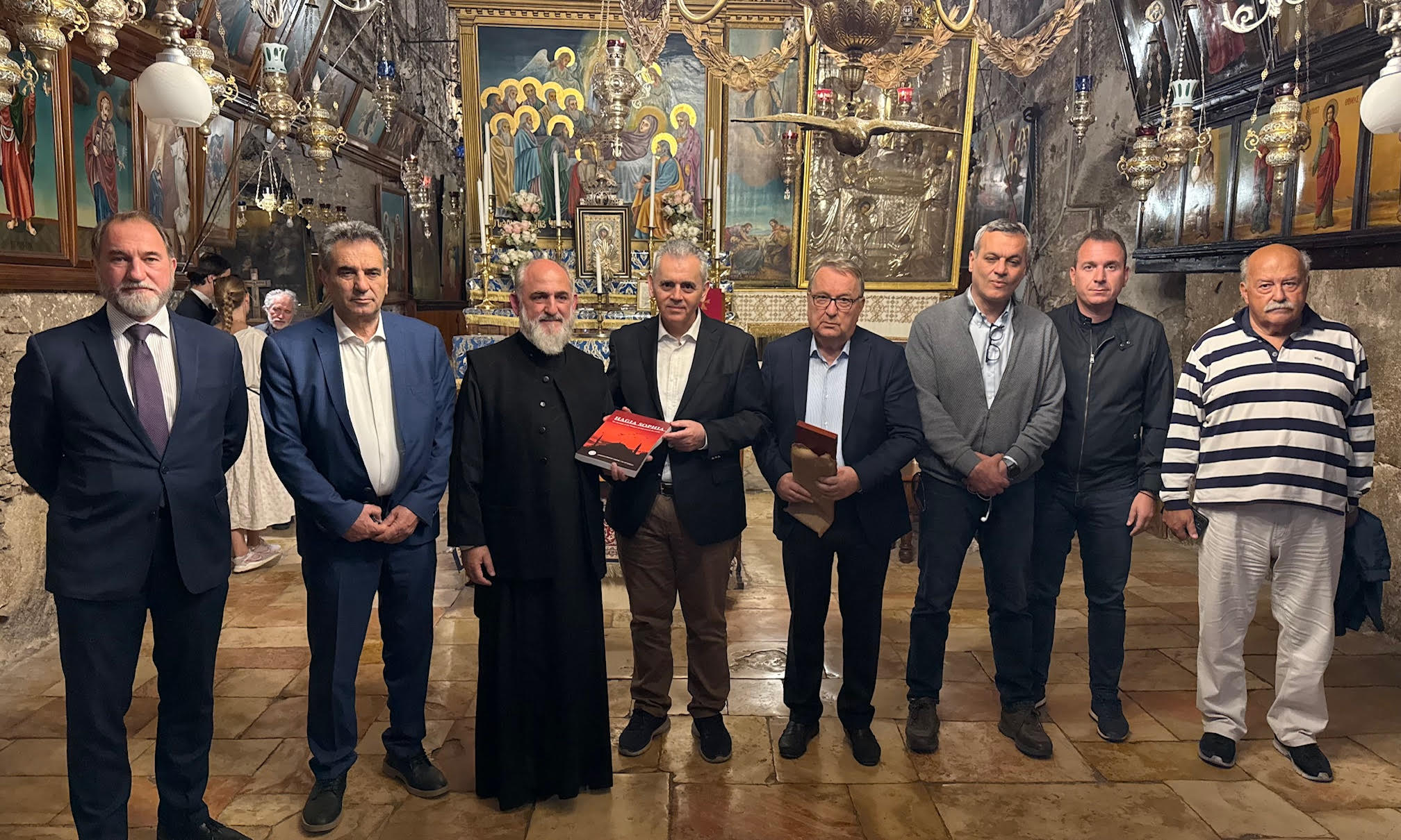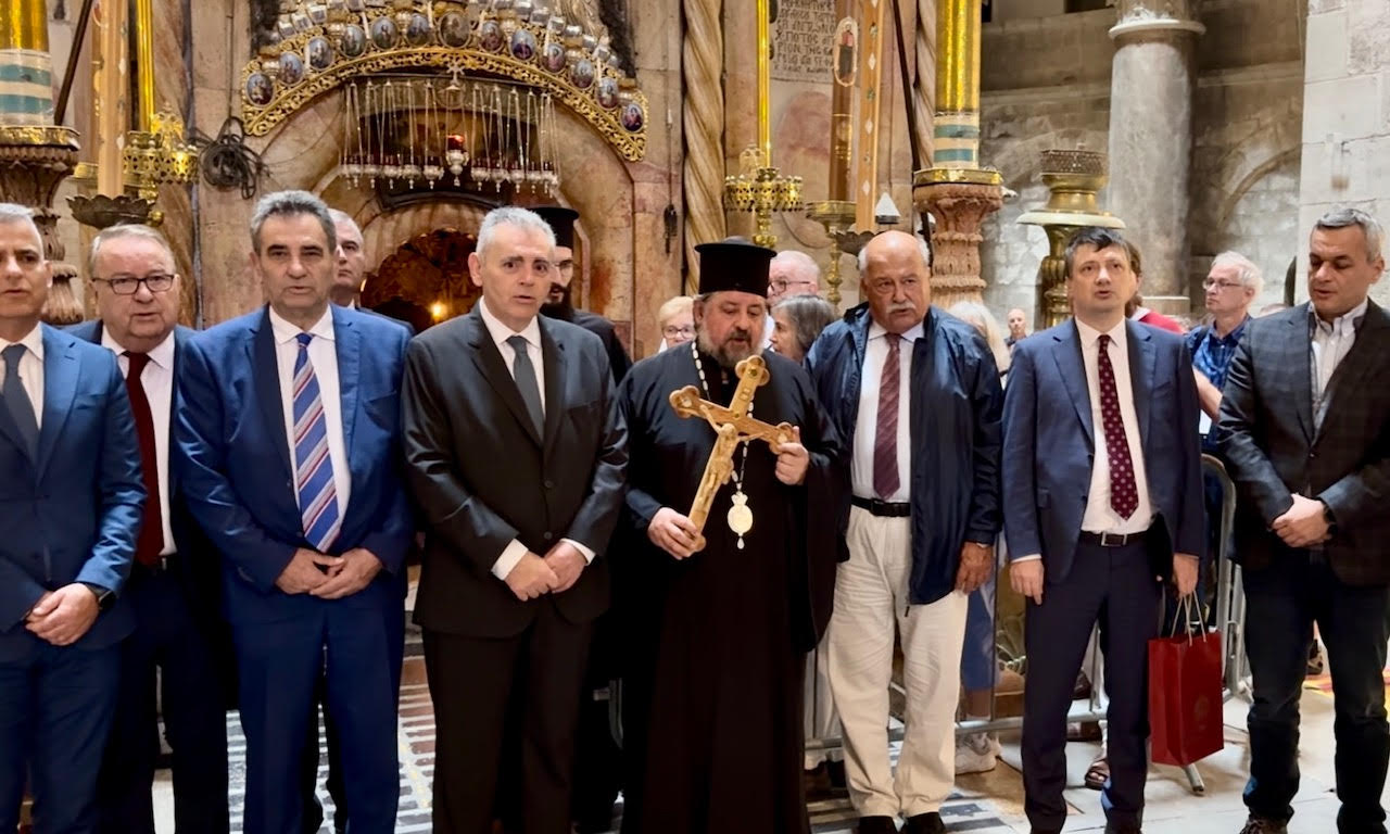 Οι βουλευτές της ΔΣΟ μπροστά από τον Πανάγιο Τάφο, στον Ναό της Αναστάσεως.