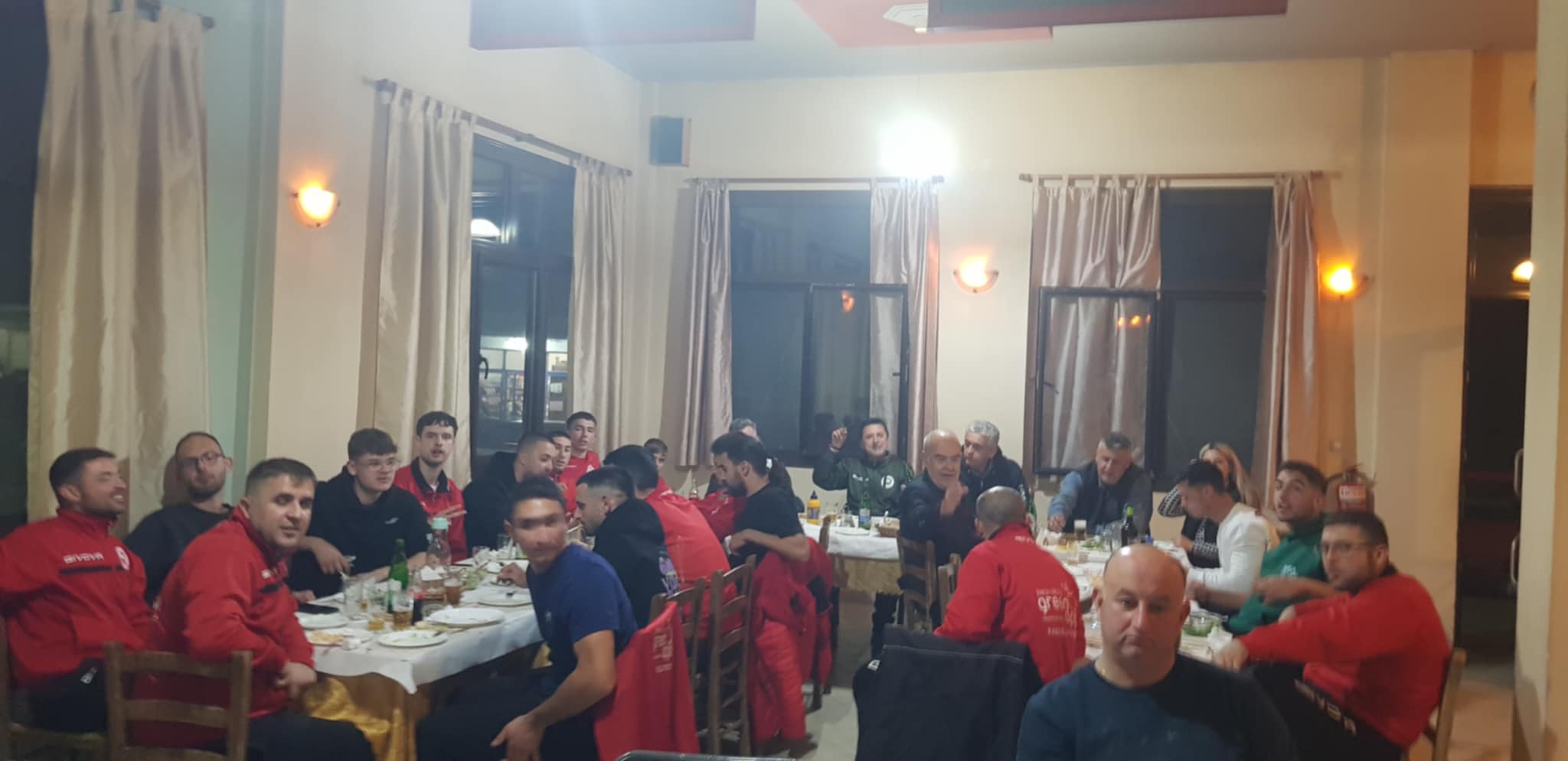 Μεταξύ τυριού και αχλαδιού, απολαμβάνοντας αρχικά τα νόστιμα πιάτα, στη φιλόξενη ταβέρνα-ψησταριά «Χείμαρρος» του γεν. αρχηγού της ομάδας Τάκη Χαϊδούλη, οι «ερυθρόλευκοι» είχαν την ευκαιρία να αποβάλουν για λίγο το άγχος και την πίεση των αγωνιστικών τους υποχρεώσεων, να χαλαρώσουν και κυρίως να επιβεβαιώσουν ότι ο Χείμαρρος Μαρμαρίνης είναι μία πραγματική οικογένεια.