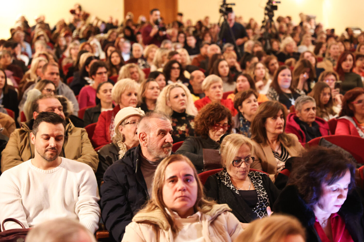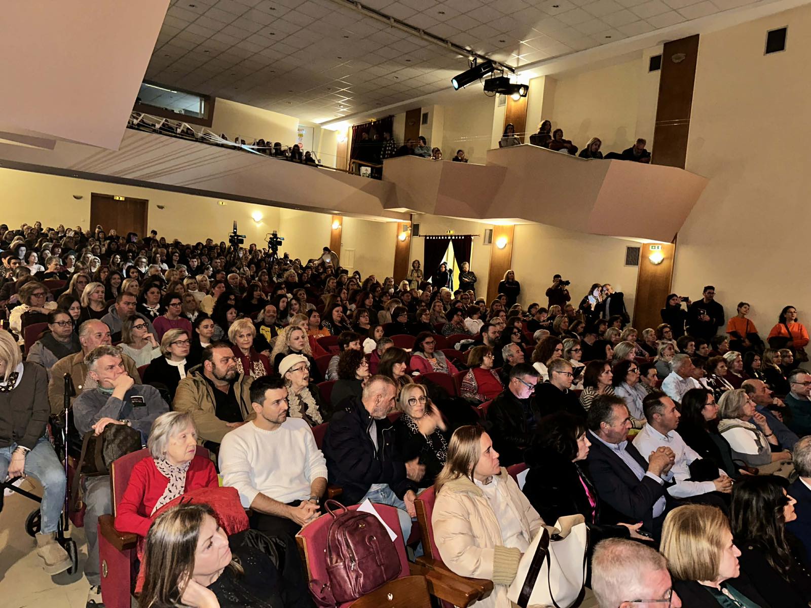 «Στο Δημοτικό Ωδείο Λάρισας, πάνω από χίλιοι Λαρισαίοι και Λαρισαίες έμοιαζαν να κρατούν για λίγο την ανάσα τους, σαν να ήθελαν να ακούσουν λίγο καλύτερα, σαν να ήθελαν να σταθούν απέναντι στις πικρές αλήθειες της γυναικείας ύπαρξης, χωρίς θόρυβο. Δεν ήταν μόνο οι πολίτες που γέμισαν την αίθουσα του ΔΩΛ μέχρι το τελευταίο διαθέσιμο κάθισμα, μέχρι τον τελευταίο εξώστη και το τελευταίο σκαλοπάτι, αλλά η ίδια η τοπική κοινωνία της Λάρισας, όλη, πολύχρωμη και αυθεντική, με διαφορετικές προσωπικές αφετηρίες και πολιτικές αναφορές, διαφορετική αλλά και ίδια, που ερχόταν σύσσωμη να δηλώσει παρούσα, ενωμένη, δηλώνοντας ταυτοχρόνως πως δεν προσπερνά, ούτε σιωπά, απέναντι στο πρόβλημα της έμφυλης βίας.