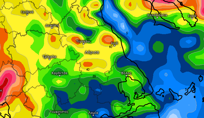 ΘΕΡΜΟΚΡΑΣΙΑ: Στα πεδινά των νομών Λάρισας, Τρικάλων και Καρδίτσας απο 8 έως 13/14 βαθμούς κελσίου, στην Μαγνησία, τα παράλια και τις Σποράδες απο 11 έως 16/17 βαθμούς κελσίου.