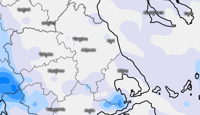 ΘΕΡΜΟΚΡΑΣΙΑ: Στα πεδινά των νομών Λάρισας, Τρικάλων και Καρδίτσας από 3 έως 14/15 βαθμούς κελσίου, στην Μαγνησία, τα παράλια και τις Σποράδες από 7 έως 15/16 βαθμούς κελσίου.