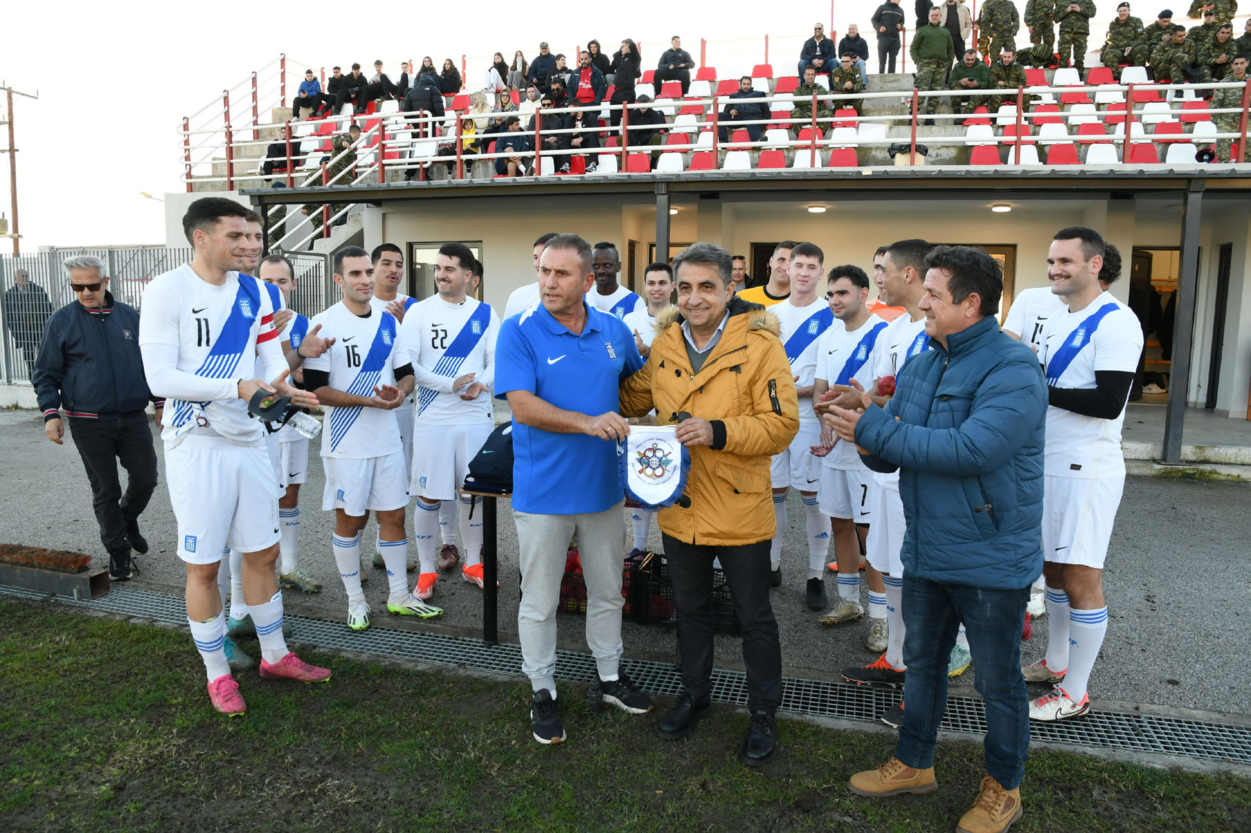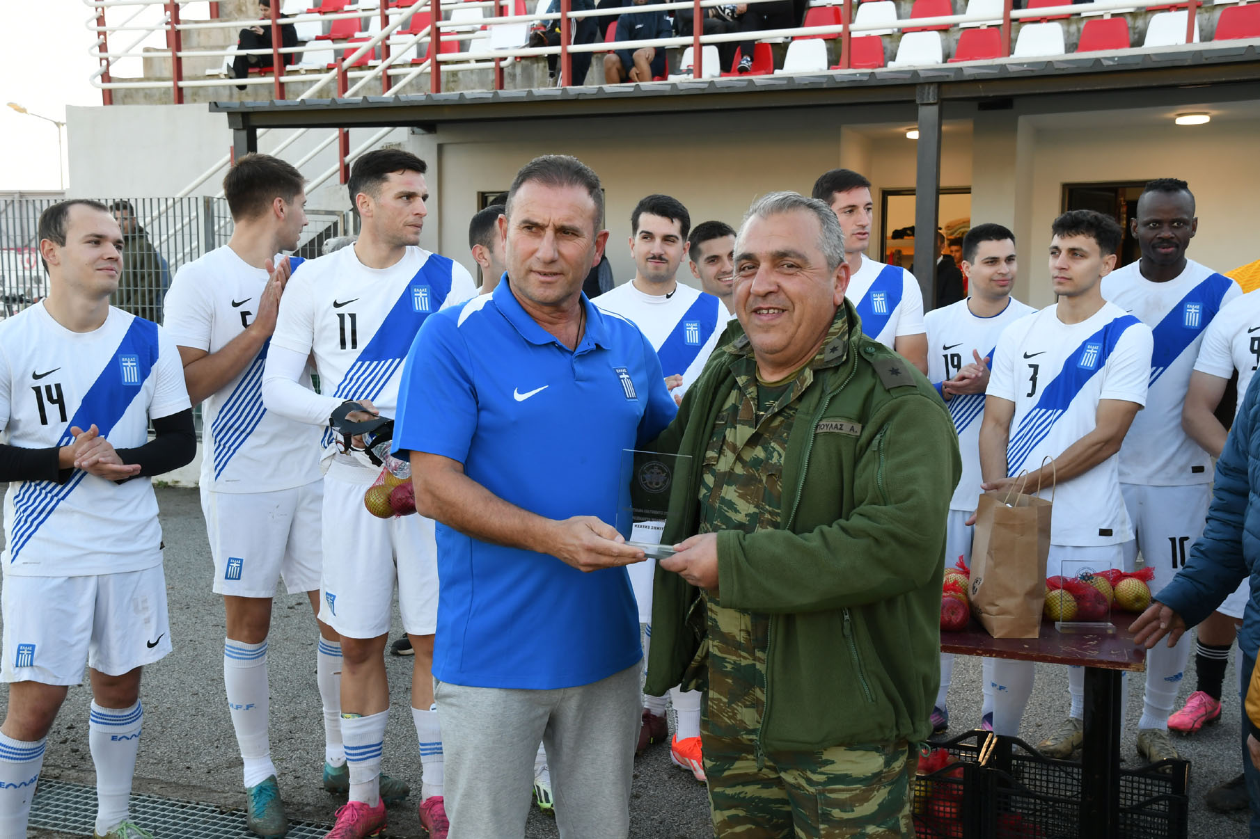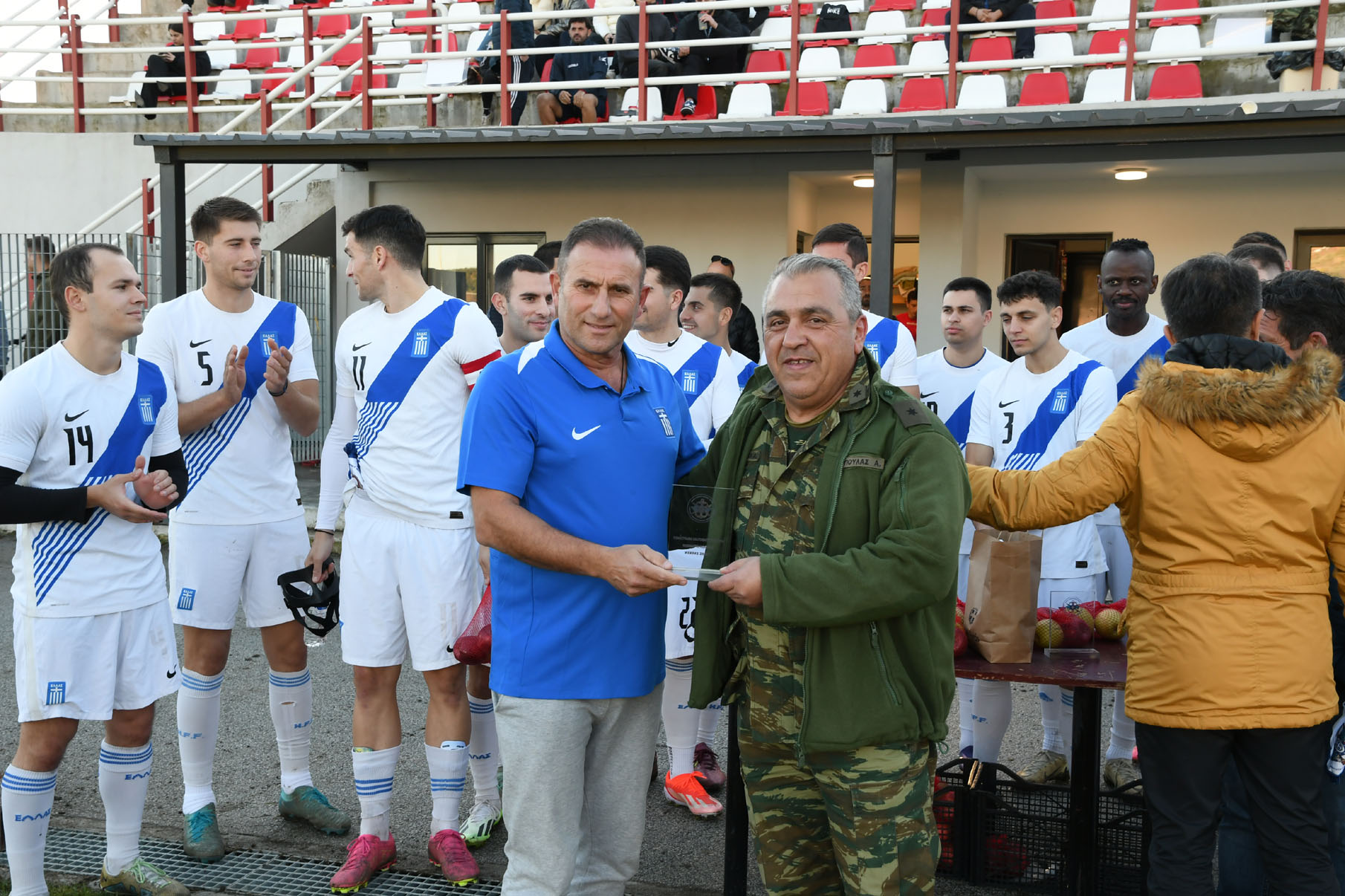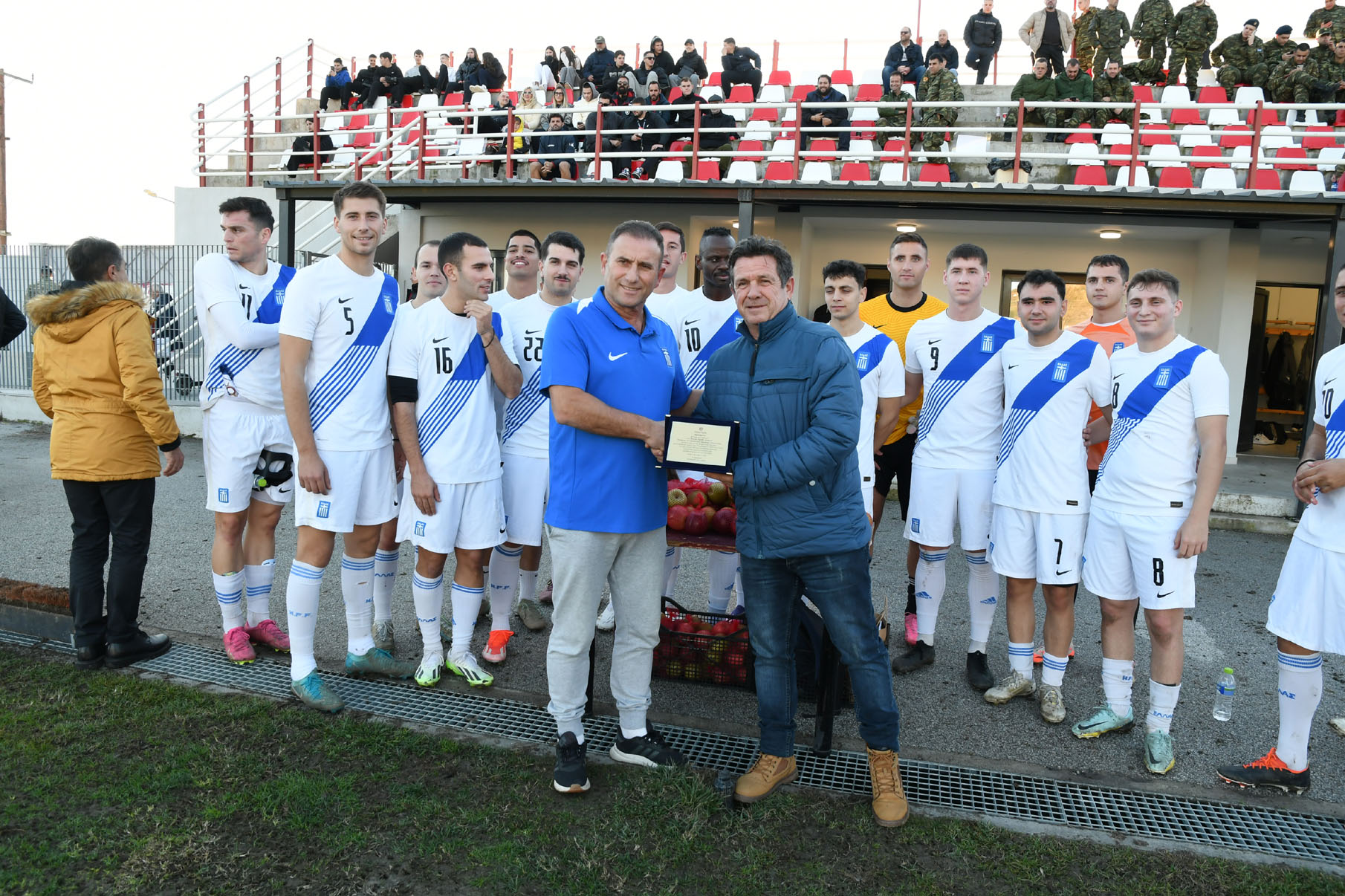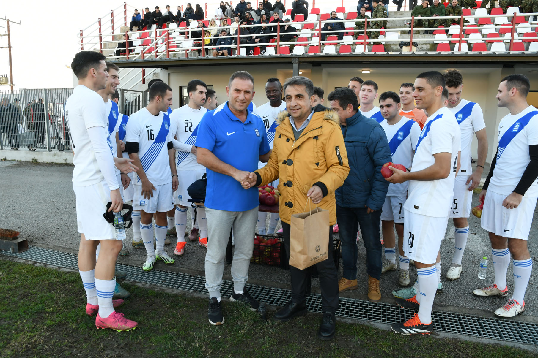 Στην ανάπαυλα έγινε ανταλλαγή αναμνηστικών μεταξύ του αντιδημάρχου Αγιάς σε θέματα Αθλητισμού, Πολιτισμού, Νεολαίας και Εθελοντισμού, Ευάγγελου Κρανιώτη, του προπονητή της Εθνικής Θεόδωρου Παχατουρίδη, του προϊσταμένου της Διεύθυνσης Κοινωνικών Υπηρεσιών, Αθλητισμού, Παιδείας, Πολιτισμού κι Εξυπηρέτησης του Πολίτη, Μιλτιάδη Ζιάκα, και του εκπροσώπου της 1ης Στρατιάς, Ανθυπολοχαγού Αντώνη Στεργιούλα, αντιπροέδρου παράλληλα της ΕΠΣΛ και προέδρου της Επιτροπής Πρωταθλήματος της ΕΠΣΛ.