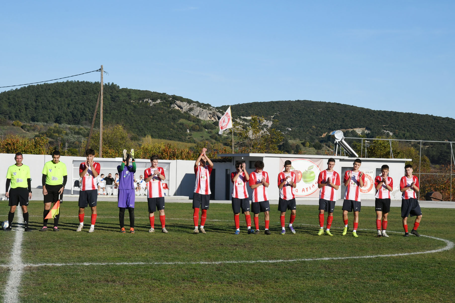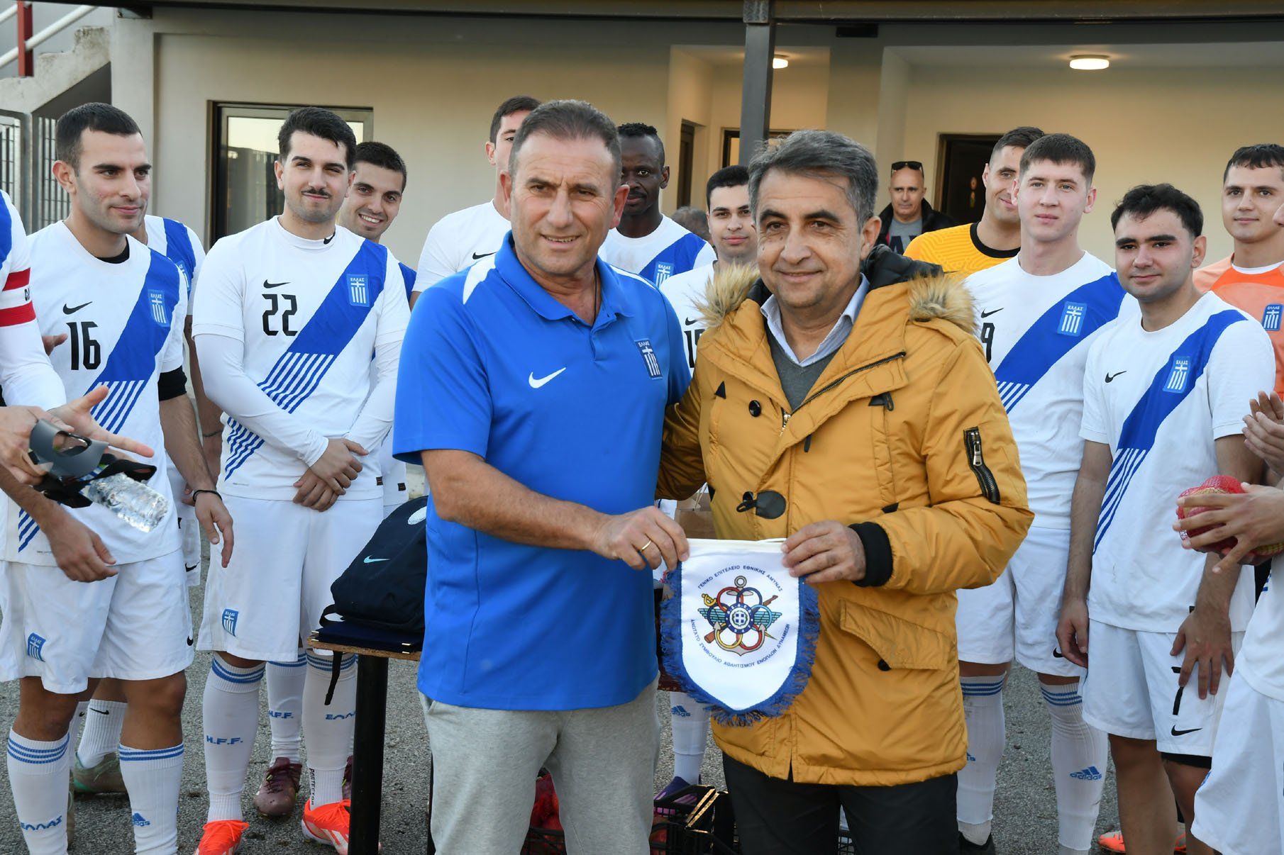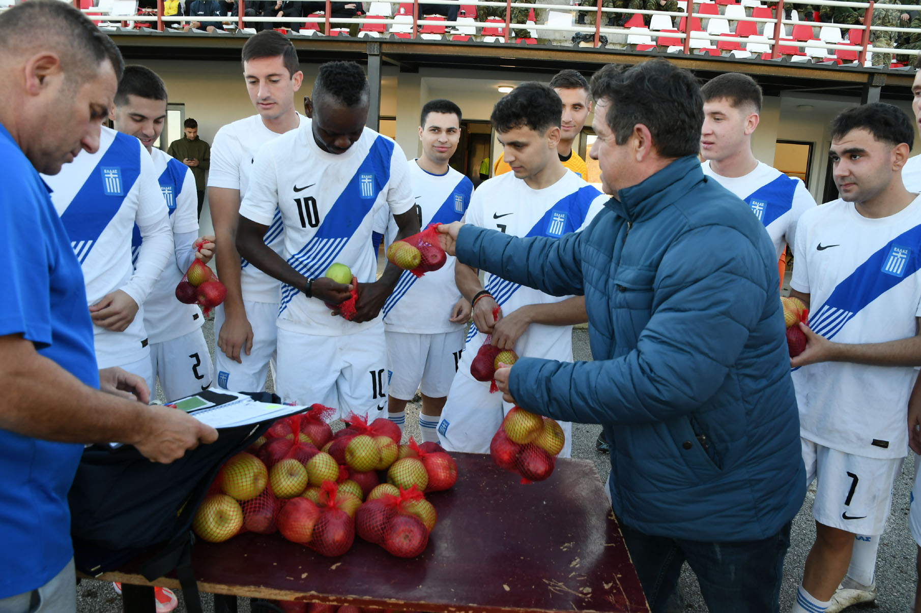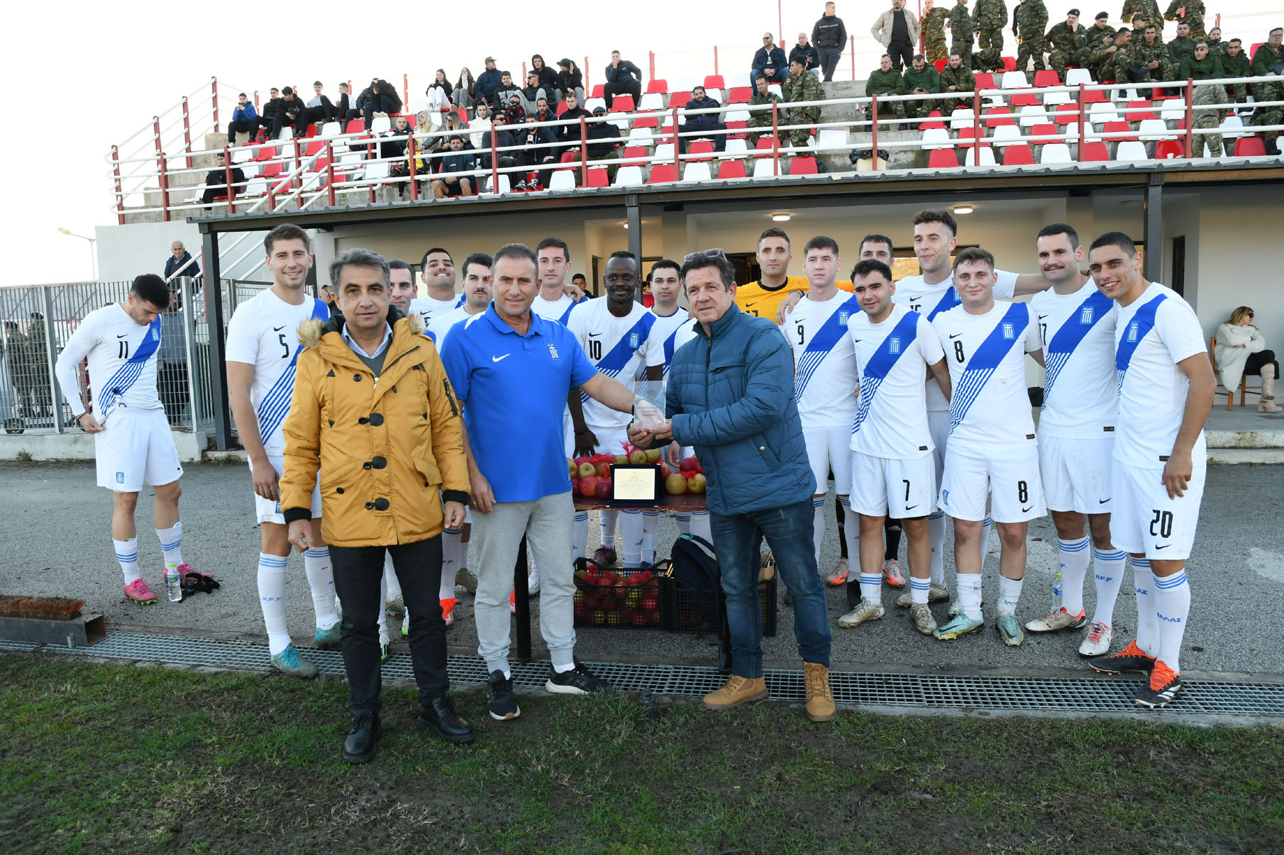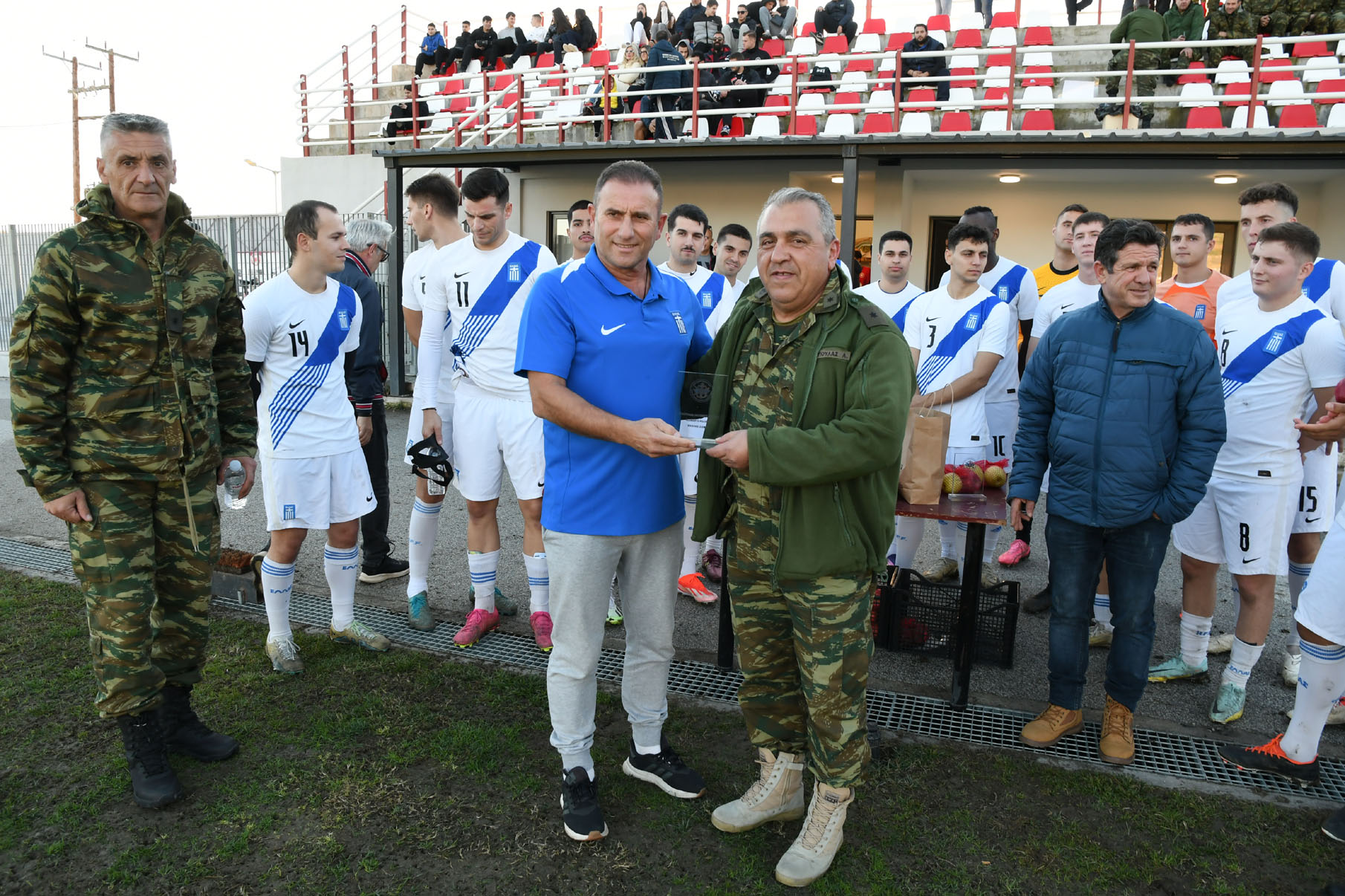 Στην ανάπαυλα έγινε ανταλλαγή αναμνηστικών μεταξύ του αντιδημάρχου Αγιάς σε θέματα Αθλητισμού, Πολιτισμού, Νεολαίας και Εθελοντισμού, Ευάγγελου Κρανιώτη, του προπονητή της Εθνικής Θεόδωρου Παχατουρίδη, του προϊσταμένου της Διεύθυνσης Κοινωνικών Υπηρεσιών, Αθλητισμού, Παιδείας, Πολιτισμού κι Εξυπηρέτησης του Πολίτη, Μιλτιάδη Ζιάκα, και του εκπροσώπου της 1ης Στρατιάς, Ανθυπολοχαγού Αντώνη Στεργιούλα, αντιπροέδρου παράλληλα της ΕΠΣΛ και προέδρου της Επιτροπής Πρωταθλήματος της ΕΠΣΛ.