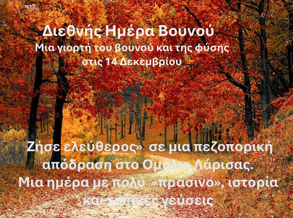 Με αφορμή την Διεθνή Ημέρα Βουνού, ο Δήμος Αγιάς και ο Δασικός Συνεταιρισμός Ομολίου διοργανώνουν δύο πεζοπορικές αποδράσεις, σε μια γιορτή του βουνού και της φύσης, την Κυριακή 14 Δεκεμβρίου.