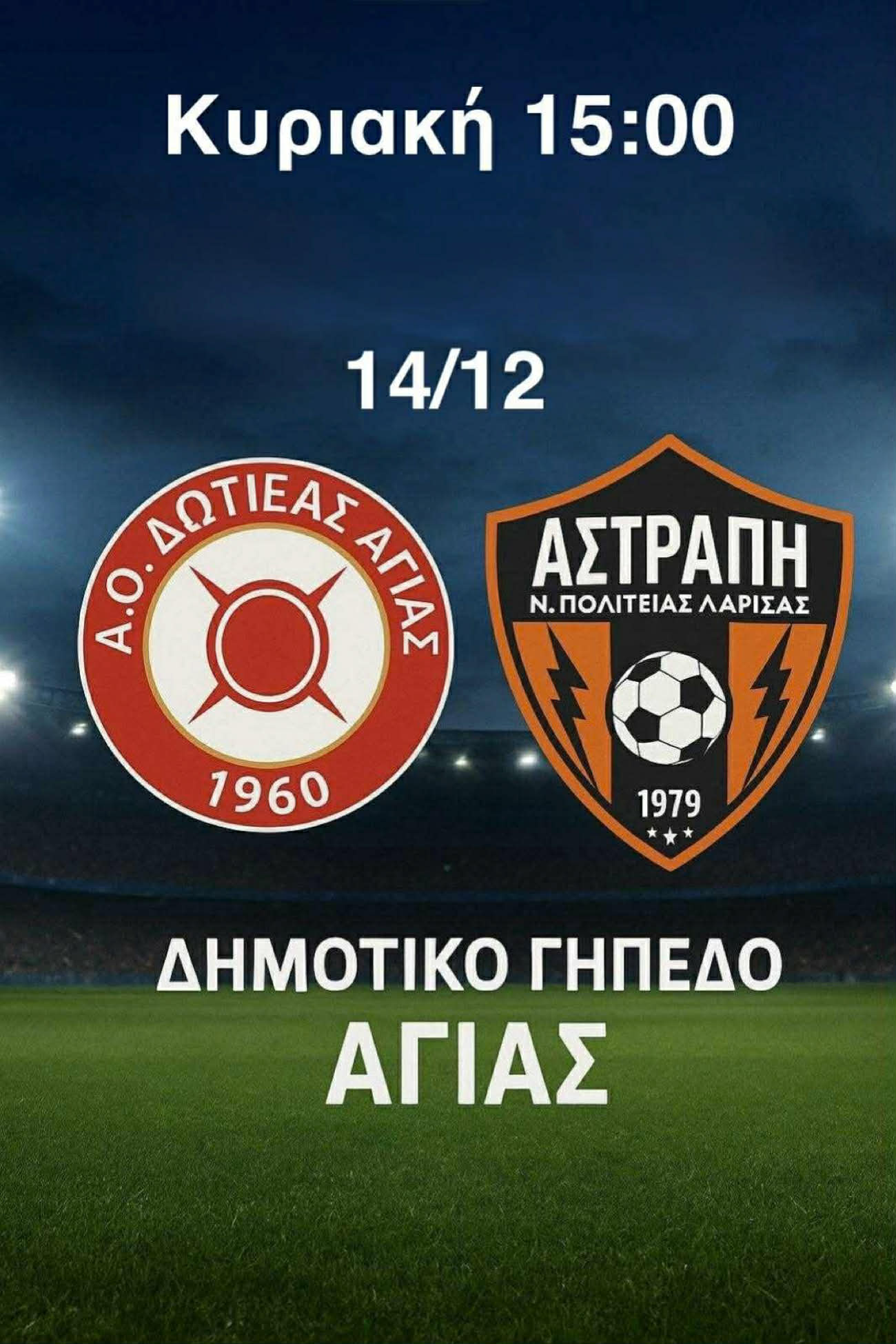 Επιστρέφοντας στην αγωνιστική δράση -μετά την προσωρινή διακοπή του πρωταθλήματος το περασμένο Σαββατοκύριακο λόγω της κακοκαιρίας- ένα ακόμη κομβικό παιχνίδι περιμένει τον Δωτιέα Αγιάς, ο οποίος την Κυριακή (14/12, 15:00) φιλοξενεί την Αστραπή Ν. Πολιτείας στο πλαίσιο της 12ης αγωνιστικής της Α’ ΕΠΣΛ. Η αναμέτρηση αναμένεται με μεγάλο ενδιαφέρον, καθώς και οι δύο ομάδες κυνηγούν βαθμούς για διαφορετικούς λόγους, αλλά με την ίδια ένταση.