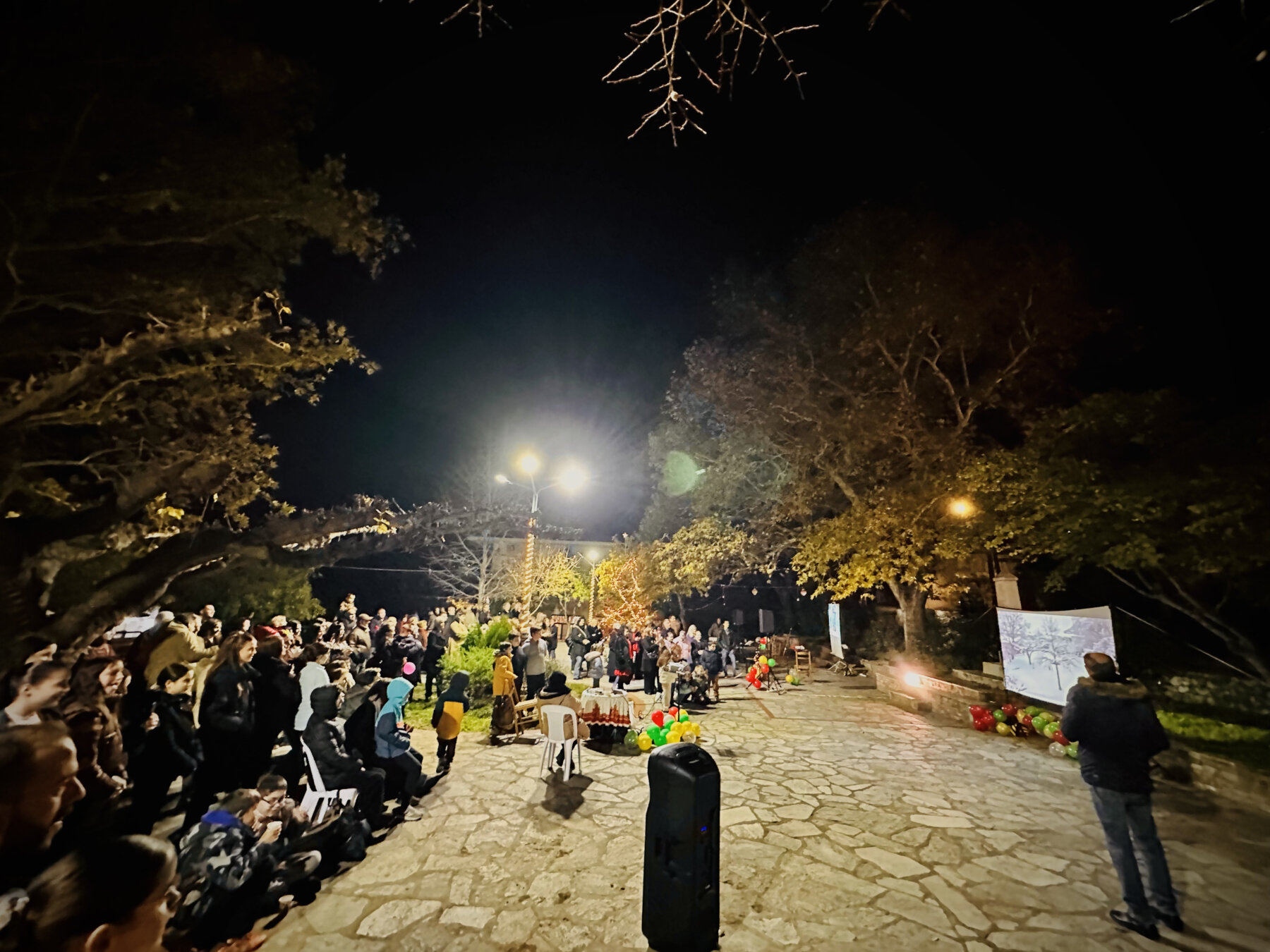 Οι μαμάδες (και οι γιαγιάδες) της Μαρμαρίνης ετοίμασαν πλούσιο μπουφέ με γλυκίσματα (αλλά και με αλμυρά), ενώ η βραδιά έγινε πιο άνετη με ζεστή σοκολάτα και ζεστό τοπικό κρασί.