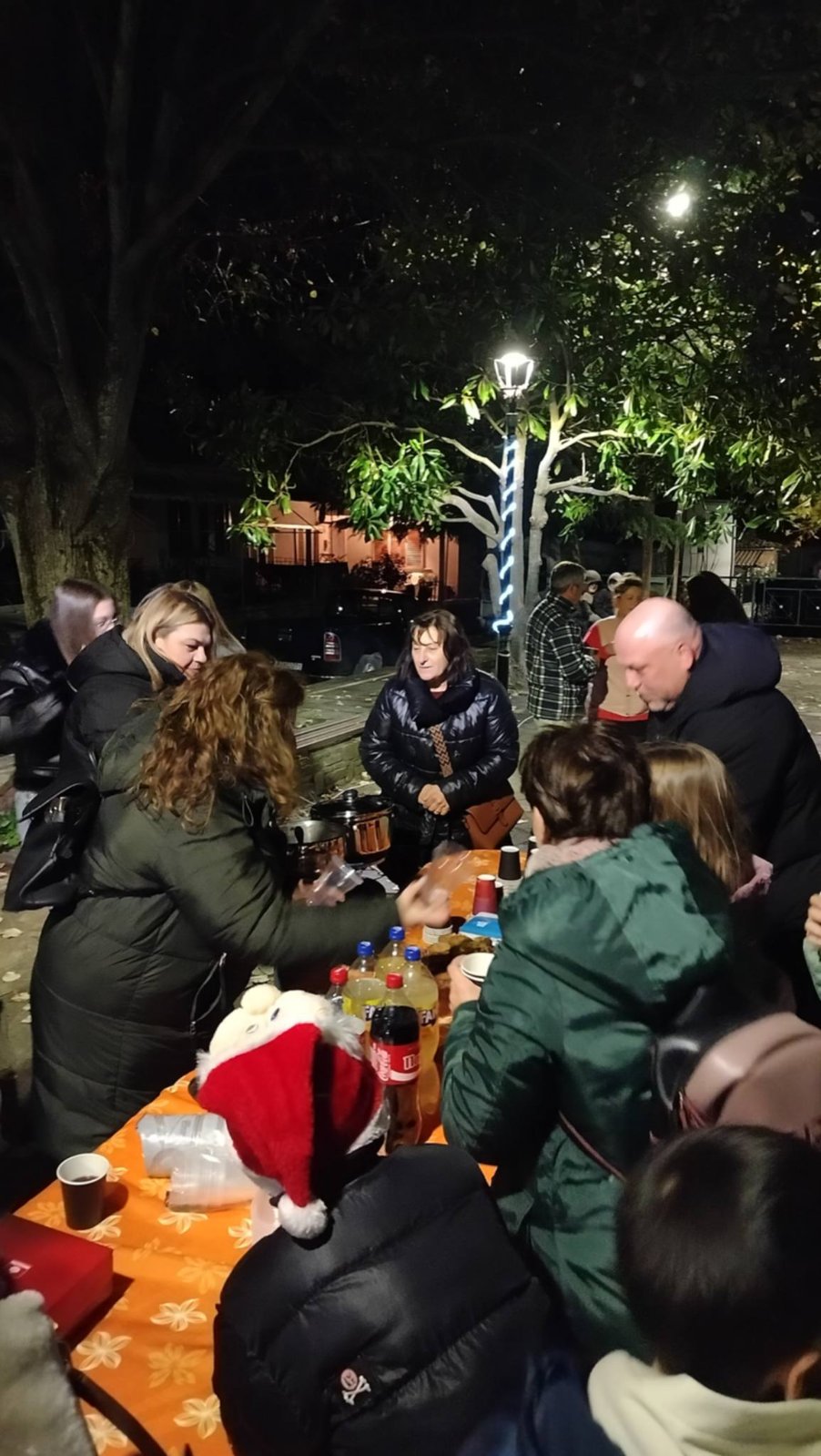 Σε όλους κι όλες δόθηκαν αναψυκτικά, ζεστό κρασί, ζεστές σοκολάτες και μελομακάρονα.