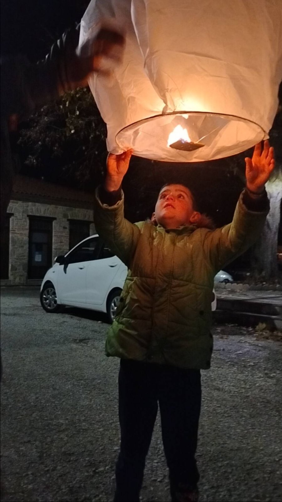 Παιδιά του χωριού έψαλλαν τα κάλαντα, άφησαν φαναράκια στον ουρανό δημιουργώντας ένα πολύ ωραίο σκηνικό και τους προσφέρθηκαν χριστουγεννιάτικα δώρα.