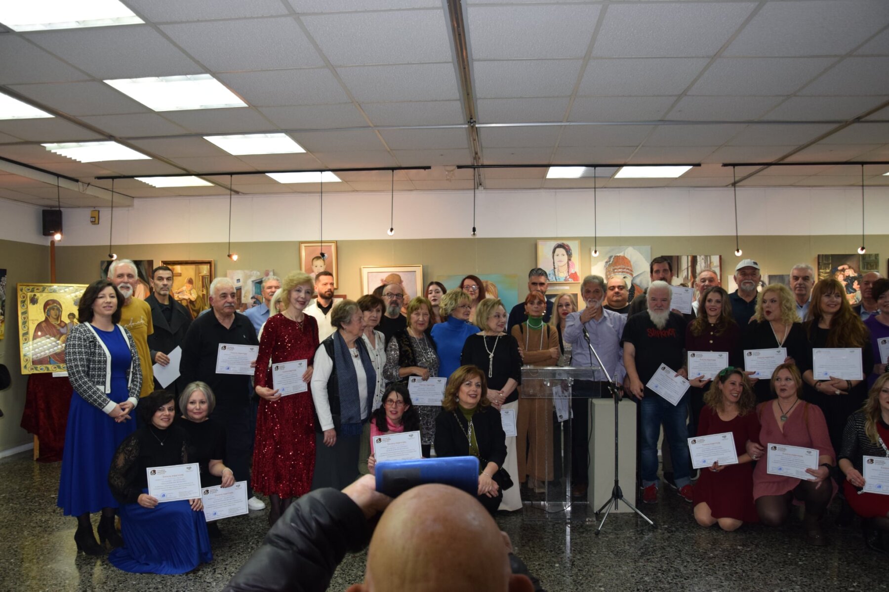 Συμμετέχουν οι καλλιτέχνες δημιουργοί: Αγγελούλη Ευαγγελία, Αναστασίου Ελένη, Αραμπατζή Λένα, Αργυροπούλου Βασιλική, Αργυρούλη Στέλλα, Βαλαβάνη Αριστέα, Βάρσου Αθανασία, Βλαχάκης Δημήτριος, Γαργάλα Μαίρη, Γεροκώστας Σωτήρης Salvador, Γεωργιάδης Γιάννης, Γκουντής Ευθύμιος, Γκουτσίδου Εύα, Γουγόπουλος Δημήτριος, Δαρδούμπας Βασίλειος, Ζαχαρούλη Ελένη, Λυγερή-Ρούλα Ζαφειρίδου, Ζωγράφος Χρήστος, Θάνος Ντανιέλα, Καραδόντου Βασιλική, Καραΐσκου Παγώνα Κουτάλου Θεοδώρα, Κουτίνα Ειρήνη, Κουτσιαρή Βούλα, Λάμπρου Νίνα, Λάππας Σωτήριος, Λιάπη Αγαθή, Μακρής Στέφανος, Μητάκου Σμαραγδή, Μηλιώνη Έλενα, Μπαρά Τόνια, Μπαρμπούτση Ελευθερία (Έλντα), Μπριάζα Κωνσταντίνα, Μπουντινούλη Αντιγόνη, Νικολόπουλος Νίκος, Ντούφα Ζωή, Πανδόλφη Αγγελική, Παπαγιαννούλα Ιωάννα, Παπαθανασίου Ηλίας, Παπανδρέου Ευθύμιος, Παυλή Ιουλία, Πίσπας Κωνσταντίνος, Ρέντας Χρήστος, Ρόκου Ζωή, Σλούτσα Δήμητρα, Σμαλιαρά Μάρθα, Σουλιώτου Παρασκευή, Τανού Στέλλα, Τζάμανη Ραφαέλα, Τζανετοπούλου Φωτεινή, Τερζούδης Αστέριος, Τσάλτας Δημήτριος, Τσικούρα Καίτη, Μάγδα Τσιφλικιώτη-Τσιγλοπούλου, Τσόγκα Έλενα, Χαλάτση Ιωάννα, Χάμος Γεώργιος, Χαρούλης Δημοσθένης, Χασιώτης Ευάγγελος, Χατζημαρκάκη Κατερίνα, Χρήστου Άρτεμις, Φιλίππου Γιάννα.
