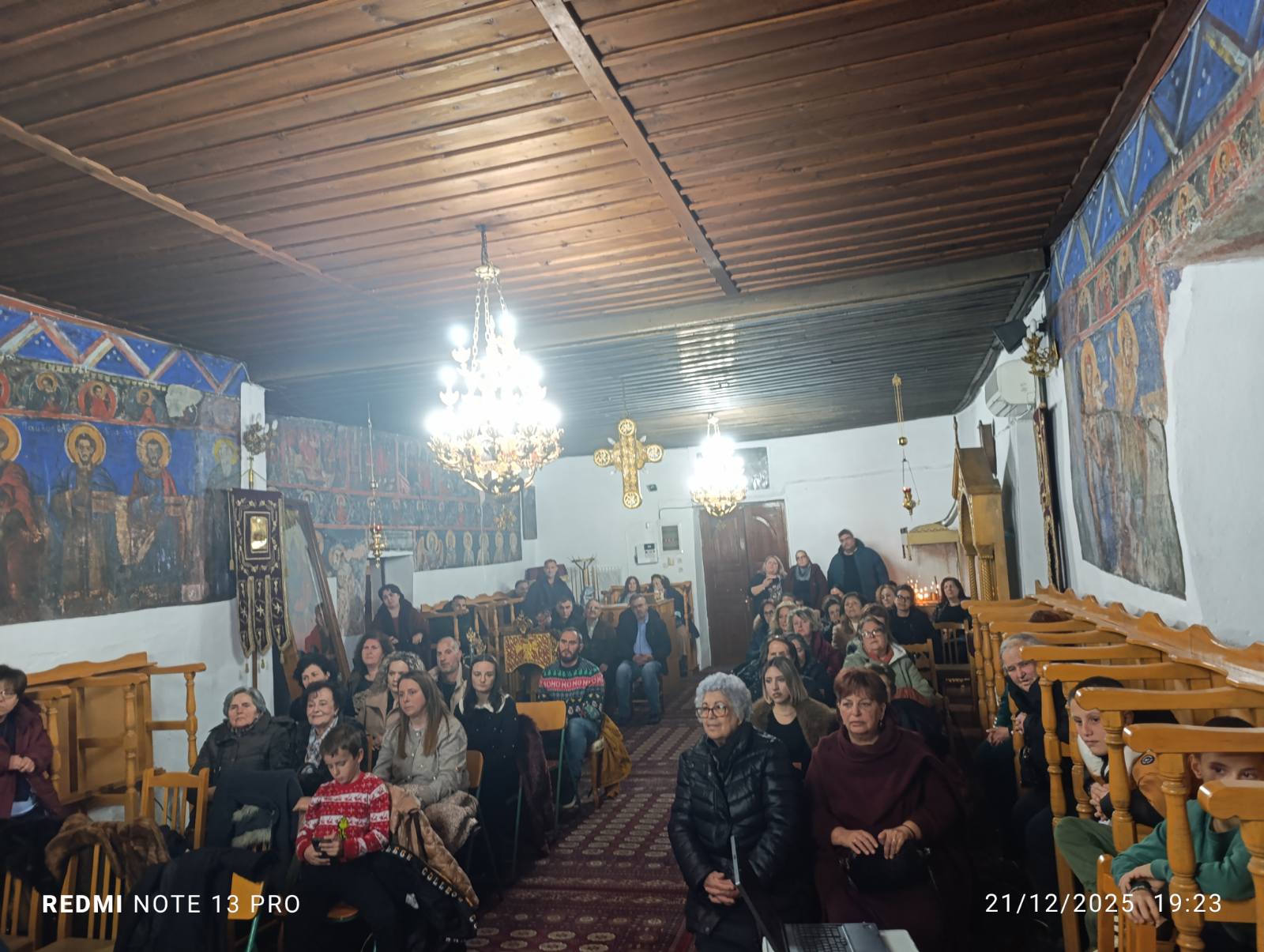 Η εκδήλωση, στην οποία συμμετείχε πλήθος κόσμου, ξεκίνησε με ομιλία του εφημέριου του Ναού, Ιερομονάχου Ελισαίου, ο οποίος αναφέρθηκε στο βαθύτερο νόημα της εορτής των Χριστουγέννων.