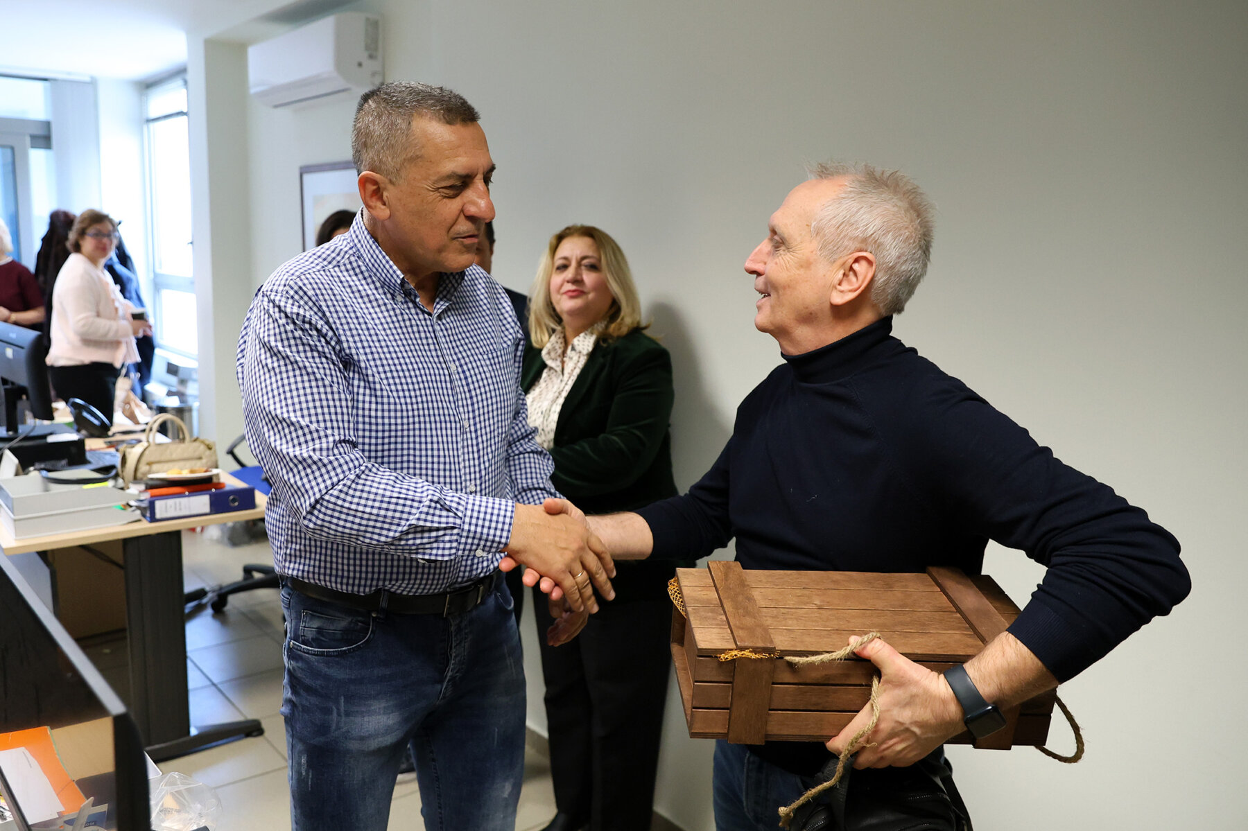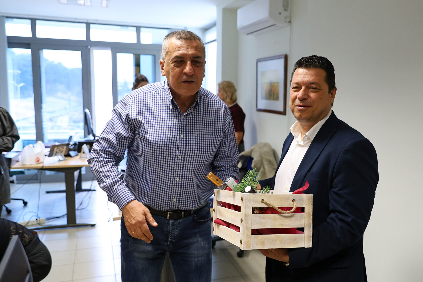 Η παραμονή των Χριστουγέννων έκλεισε με δώρα από τον Δημ. Κουρέτα στους κ.κ. Χρήστο Καραμπούζη και Χρήστο Ντάγια οι οποίοι ολοκλήρωσαν το έργο τους και αποχωρούν από τις Υπηρεσίες τους, τους οποίους και ευχαρίστησε για την σημαντική προσφορά τους στην Περιφέρεια. Δώρα έλαβαν και οι παρακάτω εορτάζοντες: Αντιπεριφερειάρχης ΠΕ Τρικάλων Χρύσα Ντιντή, Αντιπεριφερειάρχης Κοινωνικής Πολιτικής και Οικογένειας Χρήστος Γκουρουμπίνος, Σύμβουλος του Περιφερειάρχη Χρήστος Αναστασόπουλος, Γενική Διευθύντρια Χριστίνα Σταθακοπούλου, Προϊστάμενος της Δ/νσης Συγκοινωνιακών Έργων στη Δ/νση Τεχνικών Έργων ΠΕ Λάρισας Χρήστο Αντωνίου.