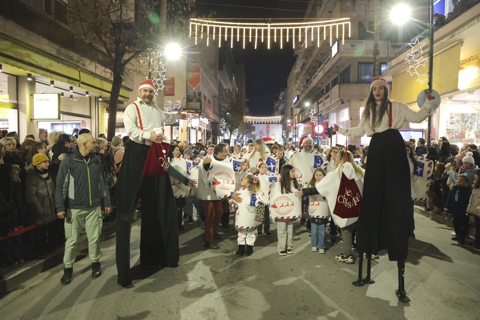 Ιδιαίτερη και ξεχωριστή στιγμή ήταν το “Ταχυδρομείο του Άη Βασίλη”, με τους ξυλοπόδαρους που το συνόδευαν να συγκεντρώνουν τα γράμματα των παιδιών, περνώντας από όλη την οδό Παπαναστασίου, μέχρι την Κεντρική πλατεία.