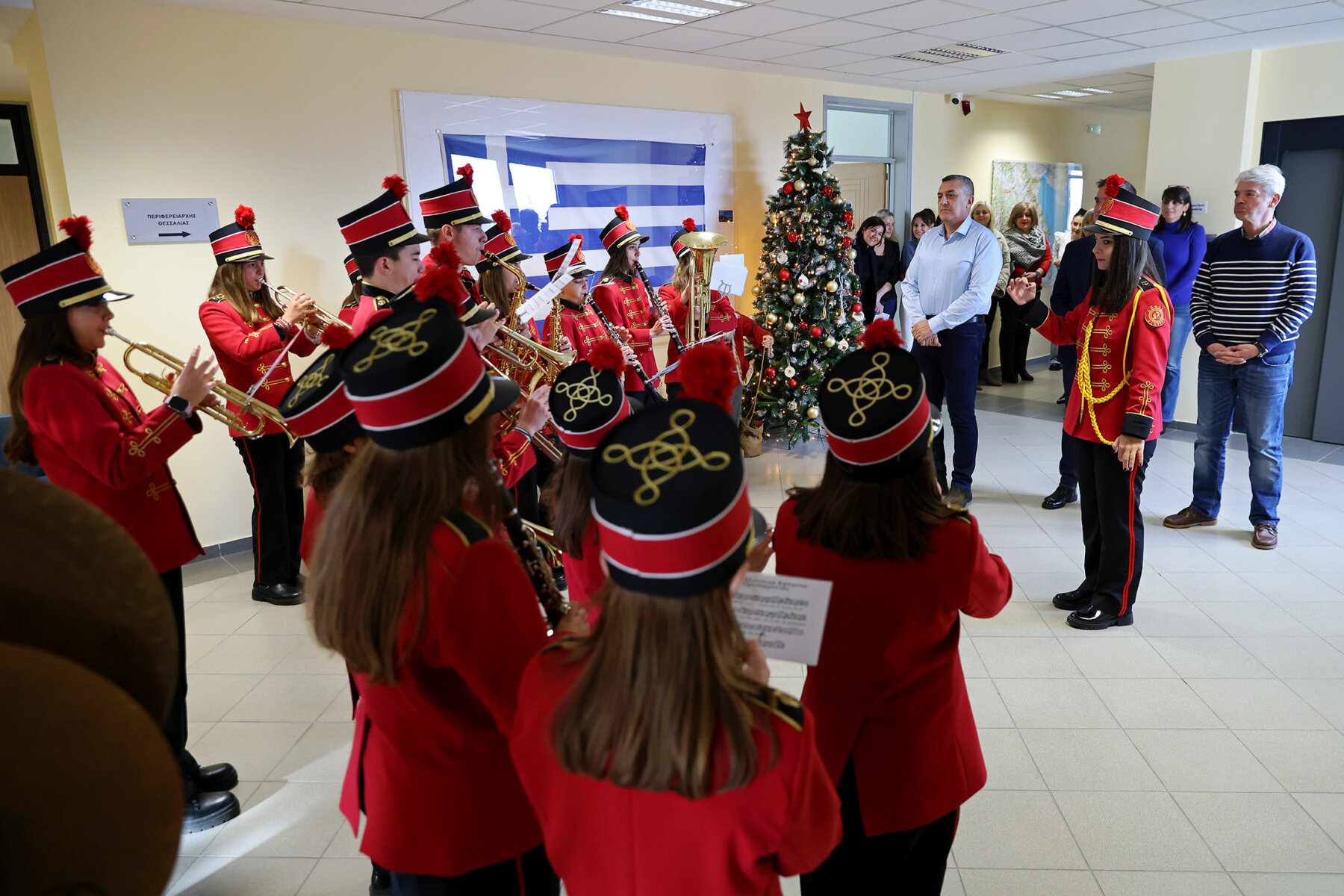 Μια ευχάριστη έκπληξη επιφύλαξαν τα παιδιά της Φιλαρμονικής μπάντας του δήμου Αλμυρού στον Περιφερειάρχη Θεσσαλίας κ. Δημ. Κουρέτα, καθώς εμφανίστηκαν στο γραφείο του με υπέροχες κόκκινες στολές με σιρίτια και πηλήκια, λέγοντας με τον δικό τους ξεχωριστό τρόπο τα κάλαντα και ευχήθηκαν Καλή Χρονιά, θυμίζοντας πραγματικούς μικρούς καρυοθραύστες.