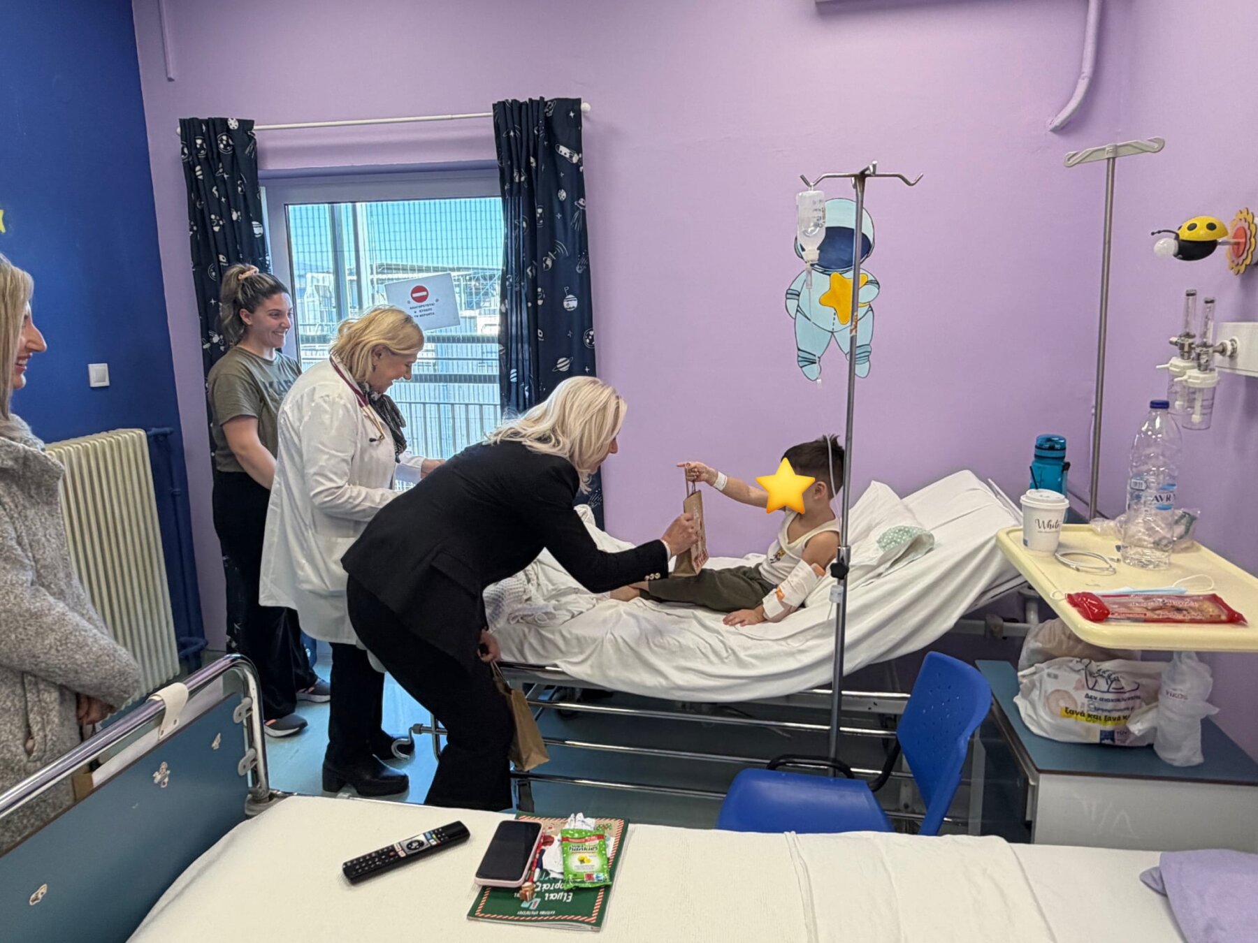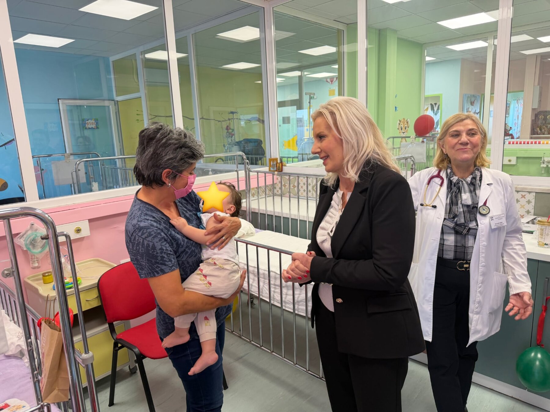 Σε ιδιαίτερα ζεστό και συγκινητικό κλίμα, η κα Καραλαριώτου αντάλλαξε ευχές με τους μικρούς ασθενείς και τους γονείς τους και προσέφερε συμβολικά δωράκια στα παιδιά, μεταφέροντας μηνύματα αγάπης, αισιοδοξίας και ελπίδας ενόψει της νέας χρονιάς. Παράλληλα, εξέφρασε τη στήριξη και την ευγνωμοσύνη της προς τη Διοίκηση του Νοσοκομείου, καθώς και το ιατρικό και νοσηλευτικό προσωπικό, για το σημαντικό έργο που επιτελεί, ιδιαίτερα κατά την εορταστική περίοδο.