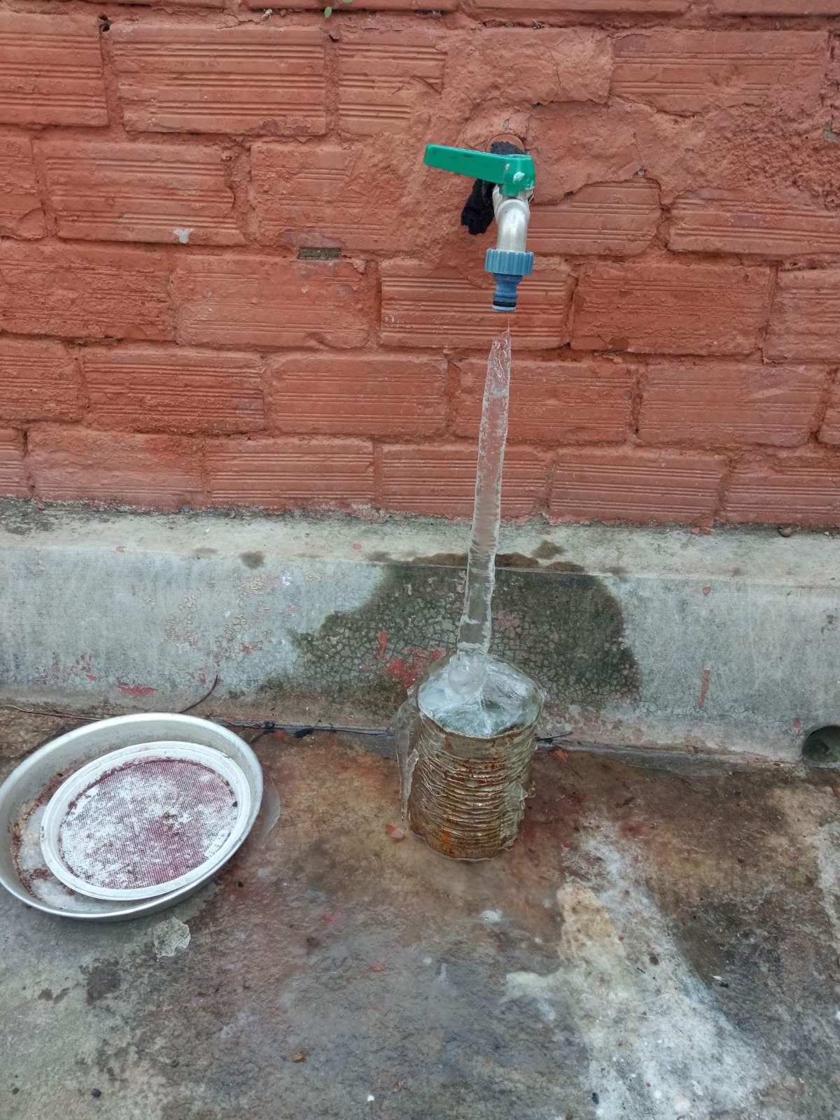 Χαρακτηριστική της κατάστασης η φωτογραφία που μας έστειλε ο κ. Στέργιος Πατσιαβούδης από βρύση στην αυλή του σπιτιού του.