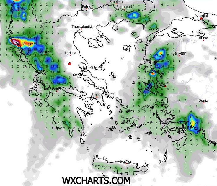 ΘΕΡΜΟΚΡΑΣΙΑ: Στα πεδινά των νομών Λάρισας, Τρικάλων και Καρδίτσας από 4 έως 17 βαθμούς κελσίου, στην Μαγνησία, τα παράλια και τις Σποράδες από 9 έως 18 βαθμούς κελσίου.
