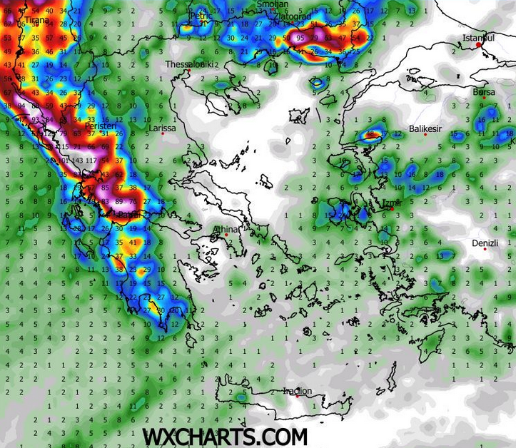 ΘΕΡΜΟΚΡΑΣΙΑ: Στα πεδινά των νομών Λάρισας, Τρικάλων και Καρδίτσας από 7 έως 16/17 βαθμούς κελσίου, στην Μαγνησία, τα παράλια και τις Σποράδες από 11 έως 18 βαθμούς κελσίου.