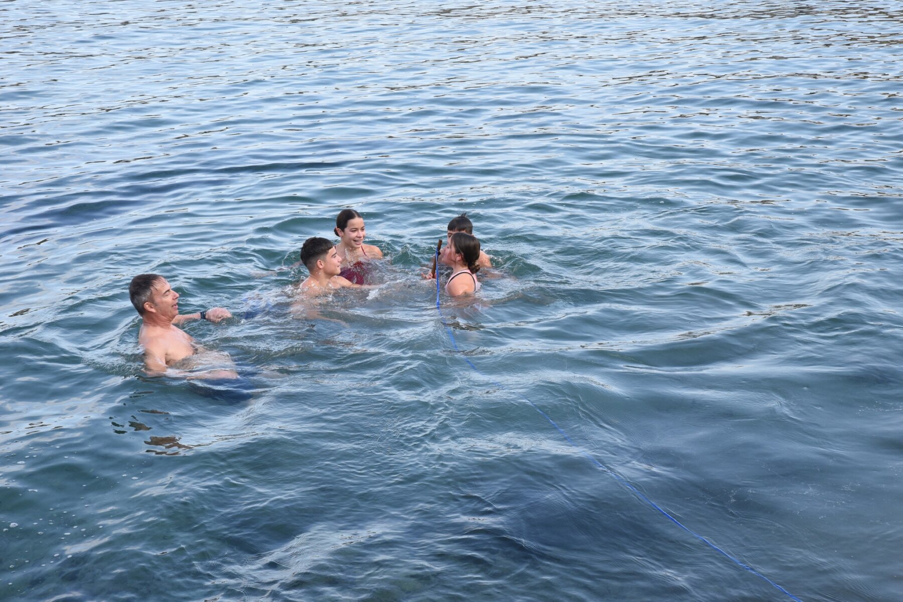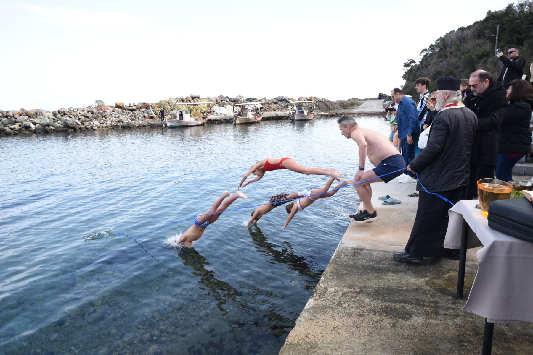 Πλήθος επισκεπτών συμμετείχαν με την παρουσία τους, ενώ νεολαία της περιοχής, αψηφώντας τη χαμηλή θερμοκρασία της θάλασσας, κολύμπησε με θάρρος και αποφασιστικότητα στα κρύα νερά για να “πιάσει” τον σταυρό.