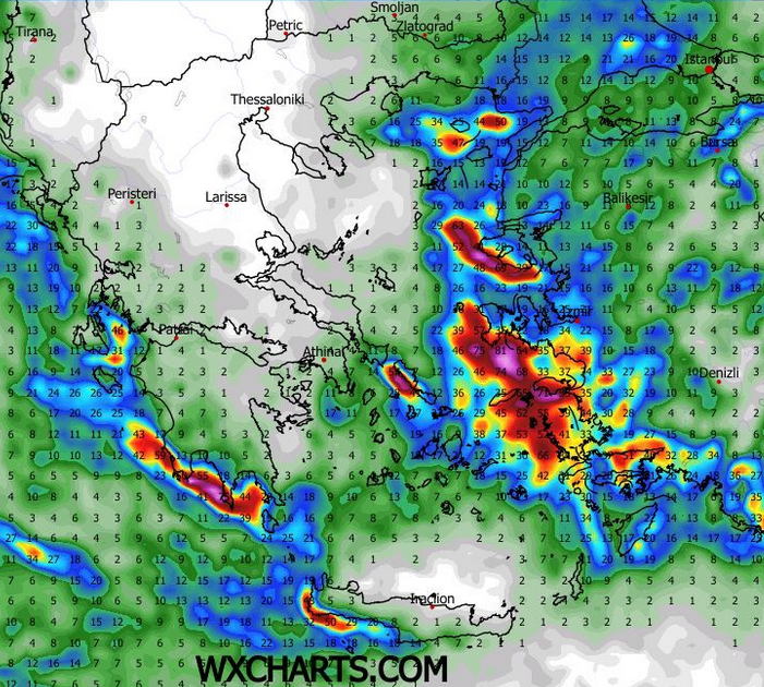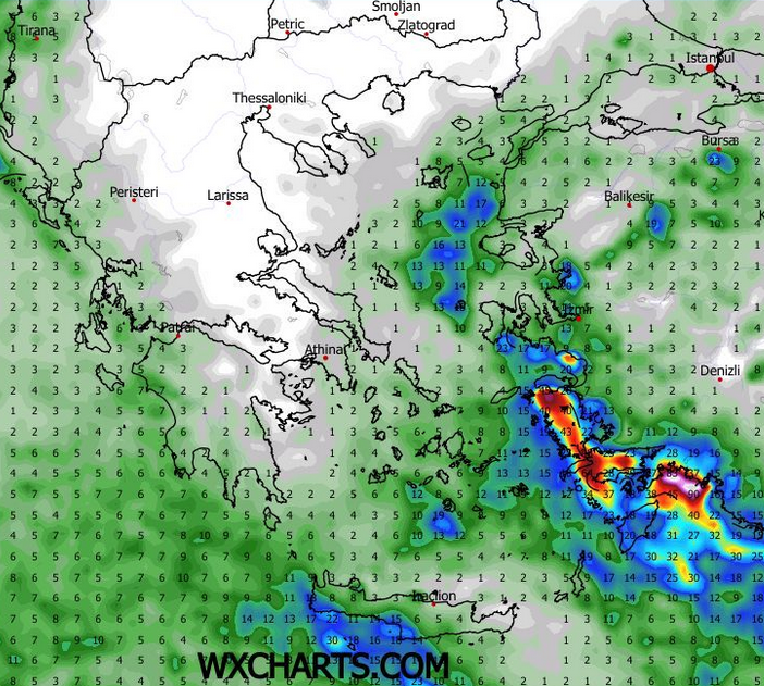 ΑΝΕΜΟΙ: Στα πεδινά βόρειοι βορειοανατολικοί 2-3 μποφόρ και στα θαλάσσια βορειοανατολικοί 5-6 μποφόρ.