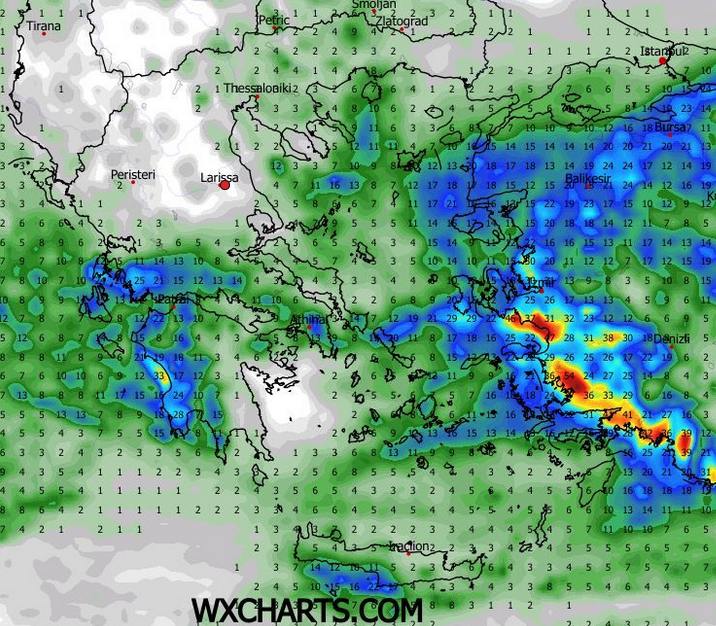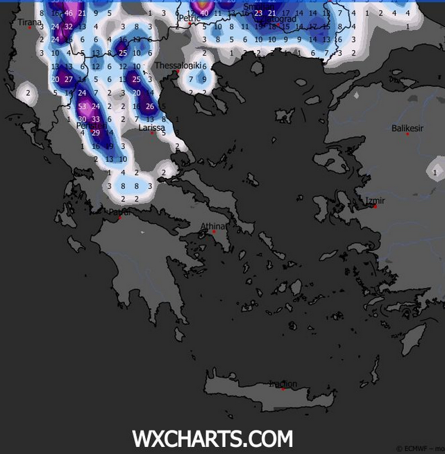 Αναμένονται κατά μέσο όρο ενδεικτικά στα πεδινά τμήματα 30-50 χιλιοστά βροχής, ενώ στα παραθαλάσσια και τα ορεινά 80-100 χιλιοστά.