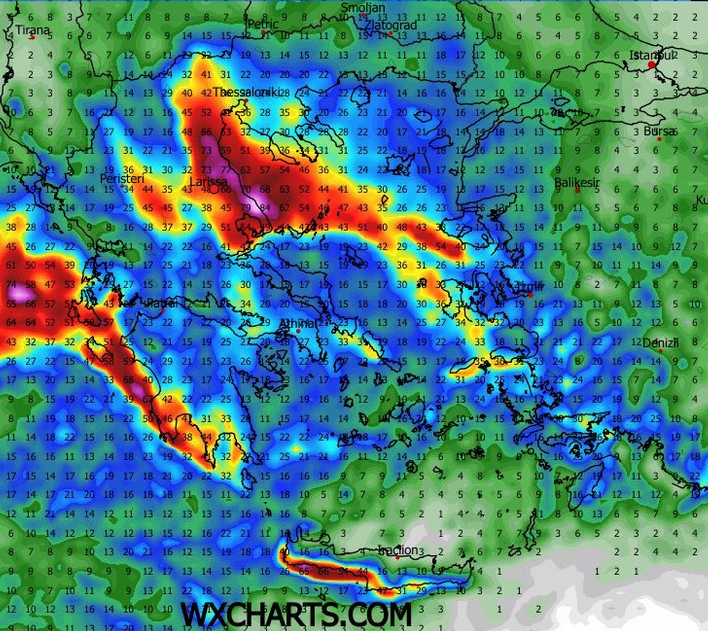 ΑΝΕΜΟΙ: Στα πεδινά βορειοανατολικοί 4-5 μποφόρ με εξασθένηση από το μεσημέρι και στα θαλάσσια βορειοανατολικοί 6-7 και τοπικά 8 μποφόρ.