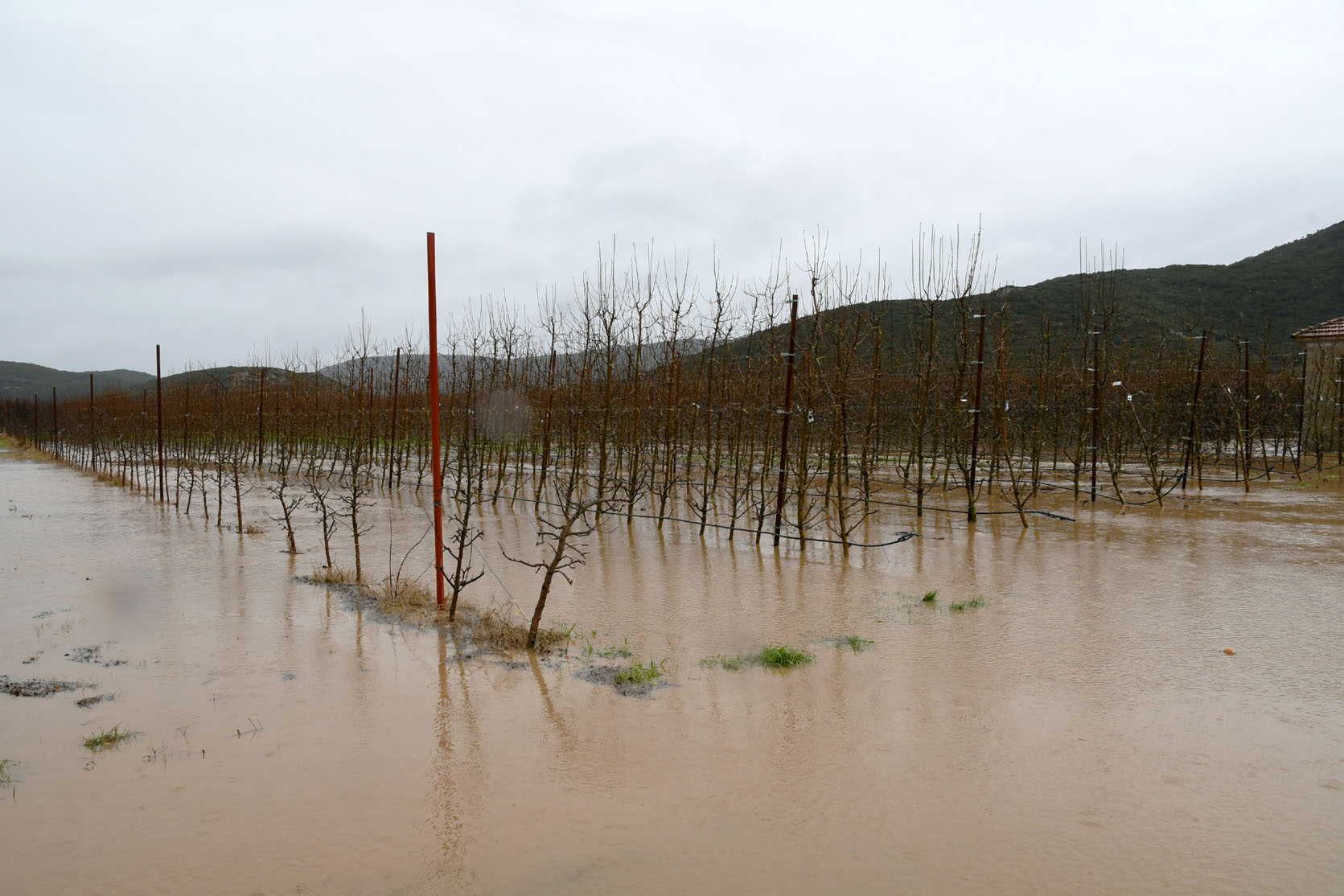 Σοβαρά πλημμυρικά φαινόμενα παρουσιάστηκαν και σε κτήματα στην Αγιά, στη θέση «Βάλτος» και «Ασπρόβαλτος», όπως και στην Πρινιά.