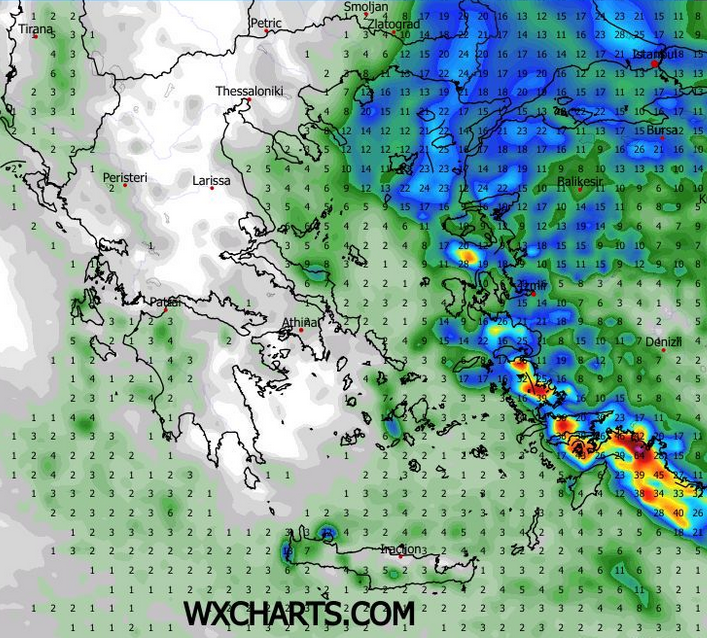 ΑΝΕΜΟΙ: Στα πεδινά νοτιοανατολικοί 2-3 μποφόρ και στα θαλάσσια νοτιοανατολικοί 3 μποφόρ.