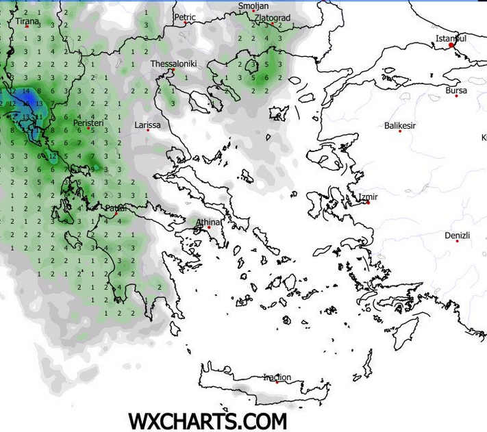 ΘΕΡΜΟΚΡΑΣΙΑ: Στα πεδινά των νομών Λάρισας, Τρικάλων και Καρδίτσας από 2 έως 14/15 βαθμούς κελσίου, στην Μαγνησία, τα παράλια και τις Σποράδες από 6 έως 15/17 βαθμούς κελσίου.